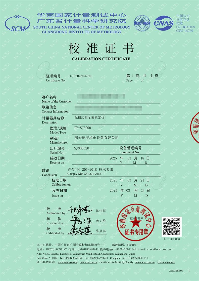 光柵式指示表檢定儀校準(zhǔn)證書 2025-4-3 本文被閱讀 4834 次