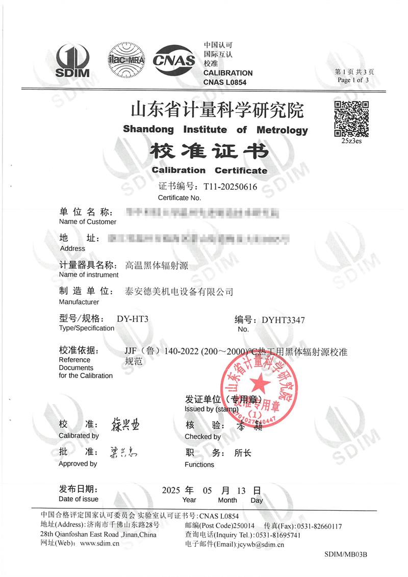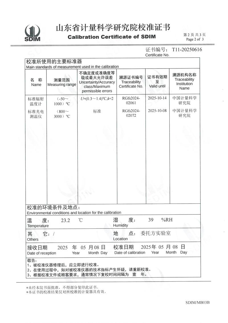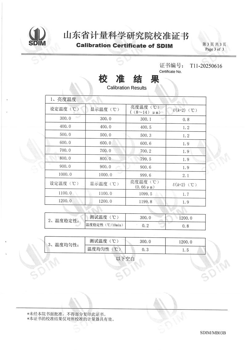 高溫黑體爐(300~1200℃)校準(zhǔn)證書 2025-5-16 本文被閱讀 4408 次