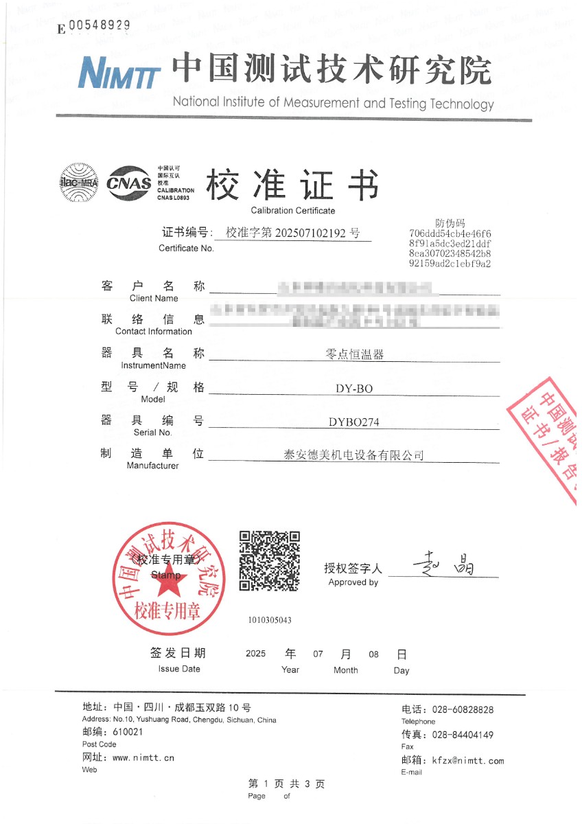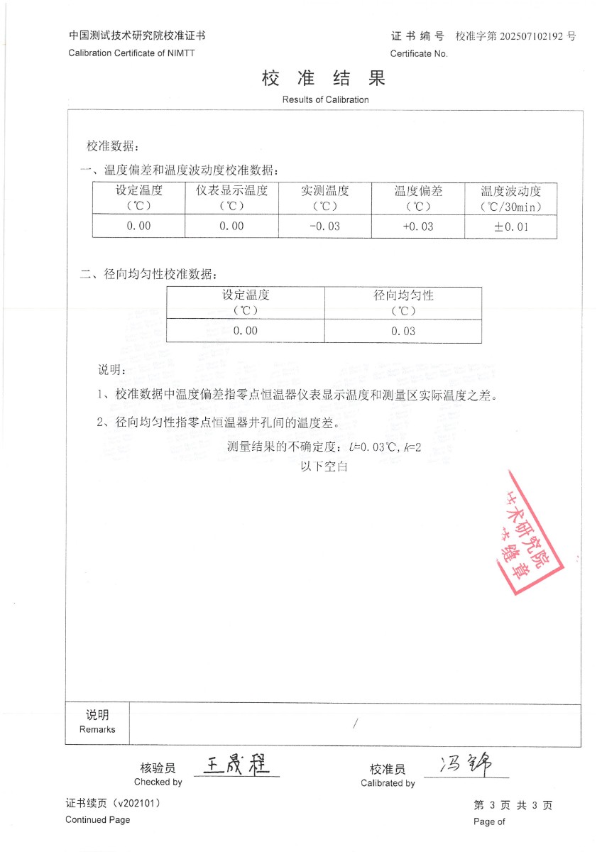 零點恒溫器校準(zhǔn)證書 2025-7-10 本文被閱讀 3860 次