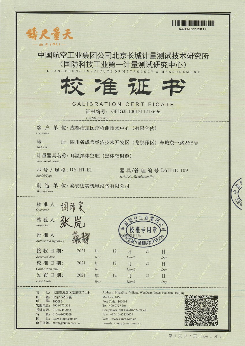 | 上一條:成都潔定醫(yī)療檢測(cè)技術(shù)-額溫黑體空腔 | 下一條:廉金屬熱電偶檢定爐-校準(zhǔn)證書(shū) |