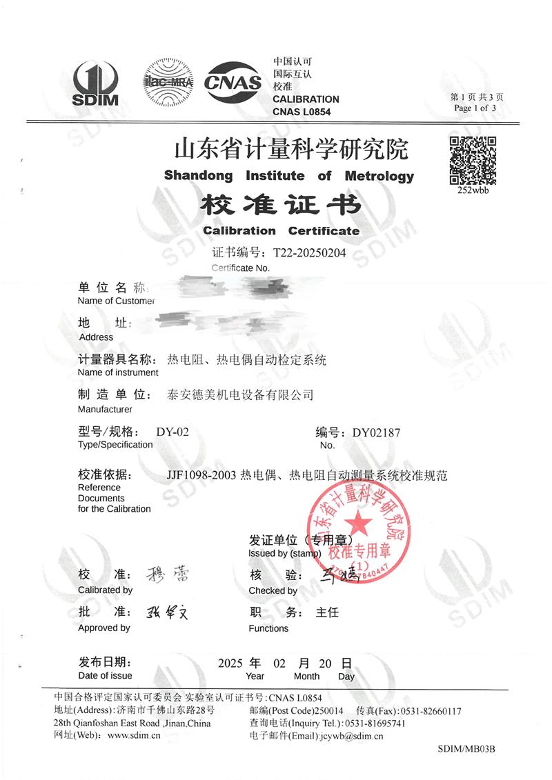 熱電阻、熱電偶自動檢定系統(tǒng)校準證書 2025-2-26 本文被閱讀 5889 次