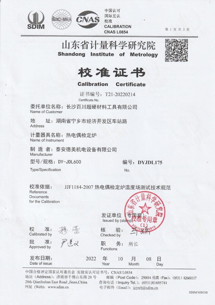 長沙百川超硬材料工具有限公司-熱電偶檢定爐 2022-11-9 本文被閱讀 14328 次