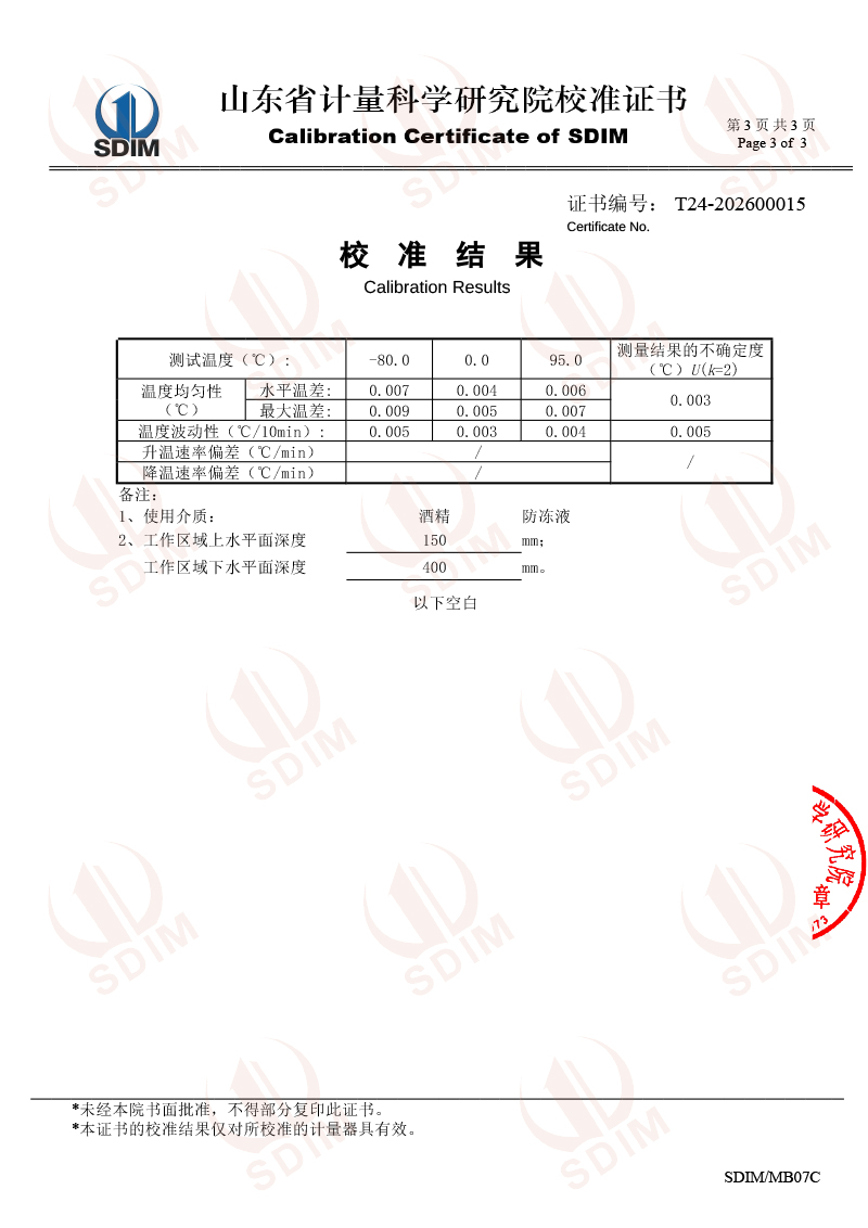 高精度制冷恒溫槽(-80~95℃)校準證書 2026-1-13 本文被閱讀 1264 次