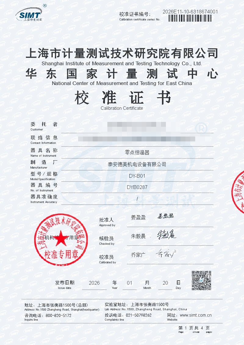 零點恒溫器-校準證書 2026-1-26 本文被閱讀 914 次
