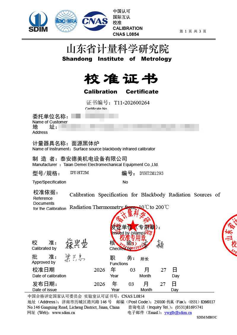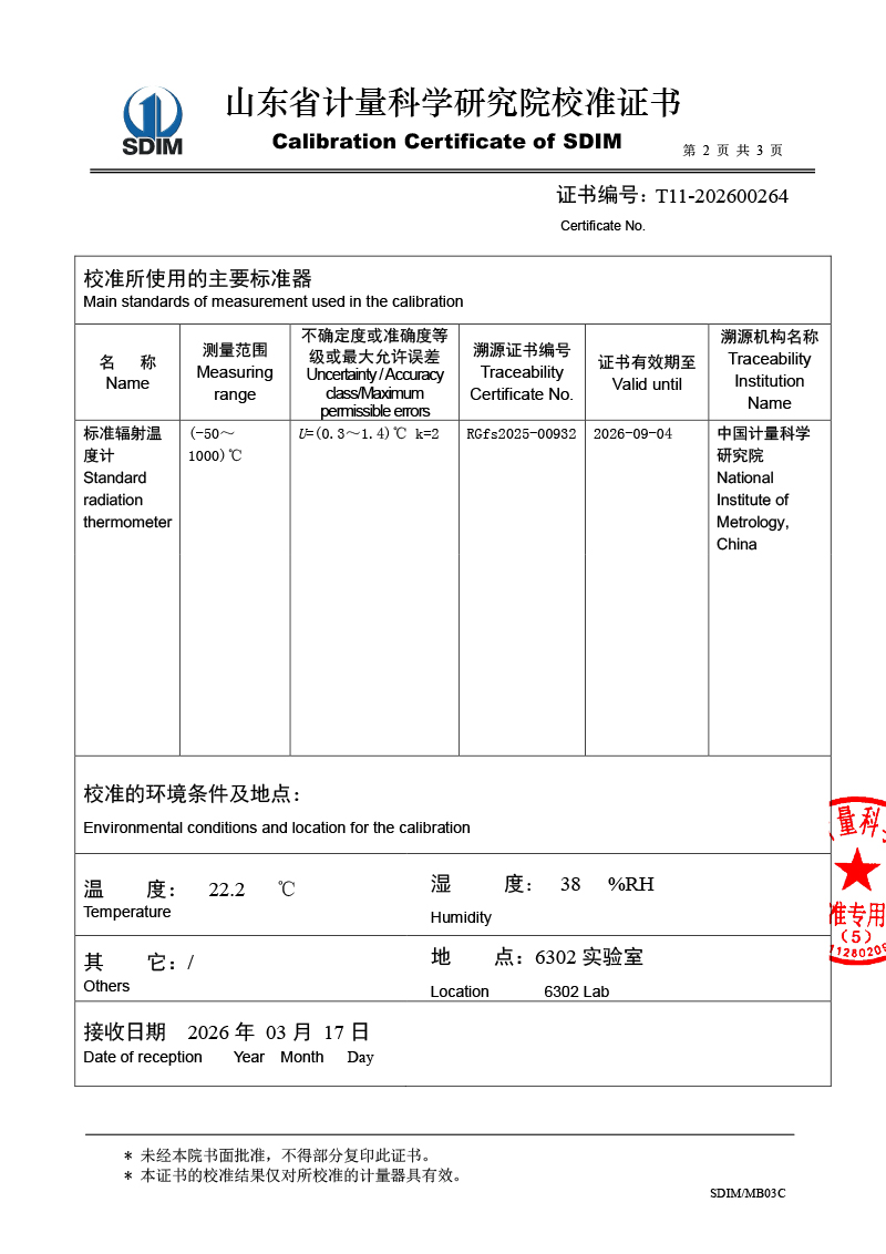 面源黑體爐-校準證書 2026-4-7 本文被閱讀 966 次
