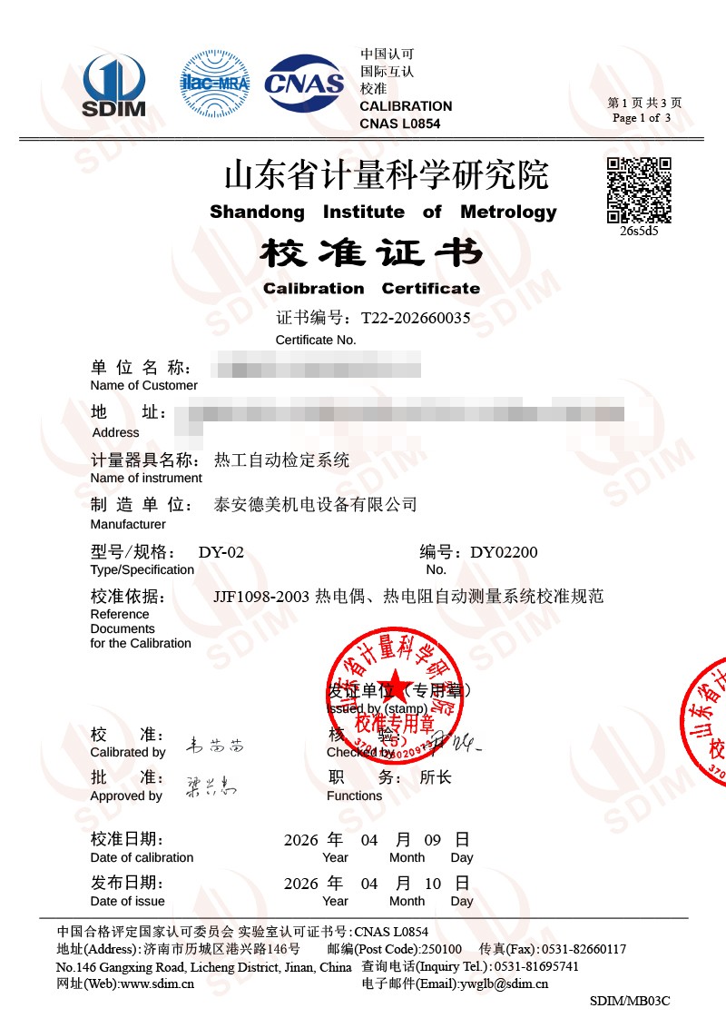 熱工自動檢定系統(tǒng)-校準證書 2026-4-11 本文被閱讀 836 次