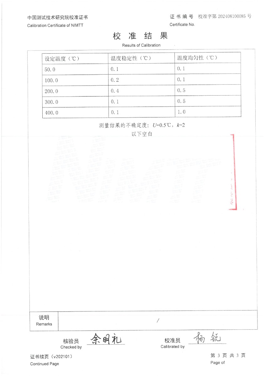 | 上一條:干體爐301(室溫+5℃~650℃)校準(zhǔn)證書 | 下一條:廉金屬熱電偶檢定爐-校準(zhǔn)證書 |