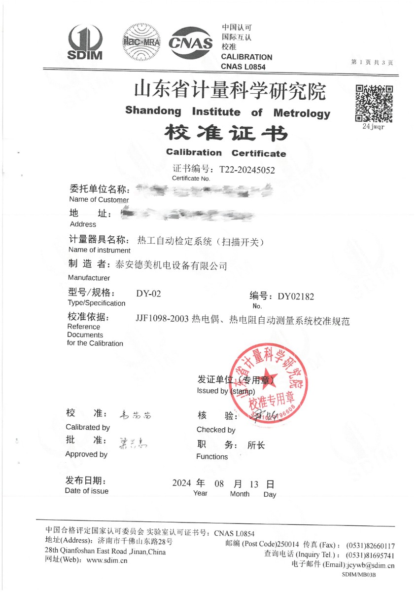 上一條:表面溫度計(室溫+5~400℃)校準(zhǔn)證書下一條:廉金屬熱電偶檢定爐-校準(zhǔn)證書