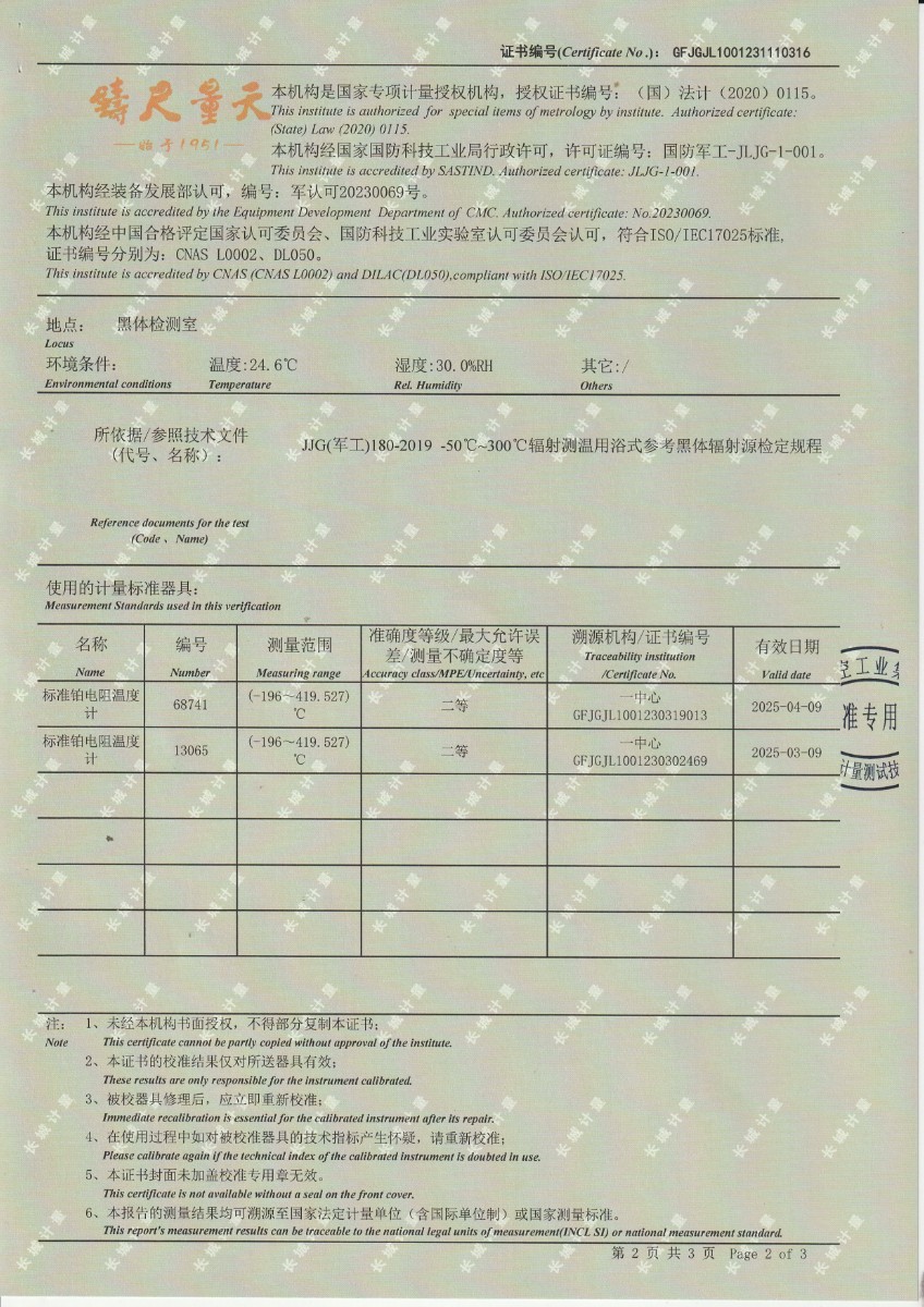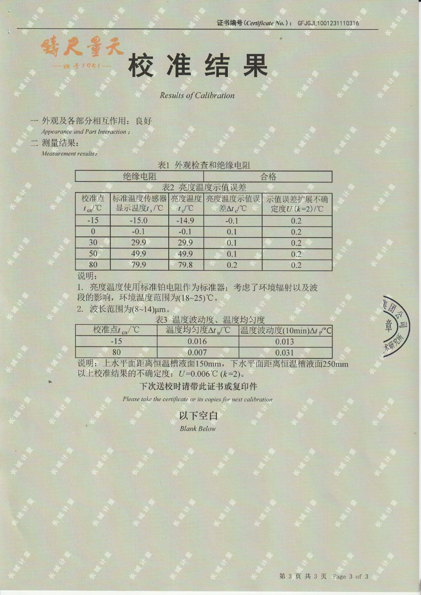 黑體輻射源校準證書DYHT1194 2023-12-4 本文被閱讀 11014 次
