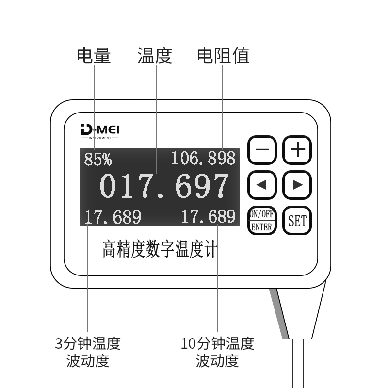 高精度數(shù)字溫度計,是泰安德美機電設(shè)備有限公司開發(fā)的高精度智能溫度儀器。通過先進的算法設(shè)計,實現(xiàn)了接觸式測溫的zui小偏差;高性能的感溫元件和電子元器件應用,確保優(yōu)異的長期穩(wěn)定性;旋轉(zhuǎn)連接件能夠讓顯示部分90度旋轉(zhuǎn),方便觀測;它具有測量精度高、使用方便、現(xiàn)場校準、安全環(huán)保等優(yōu)點,是二等標準水銀溫度計的升級換代產(chǎn)品,徹 底避免水銀泄漏污染。