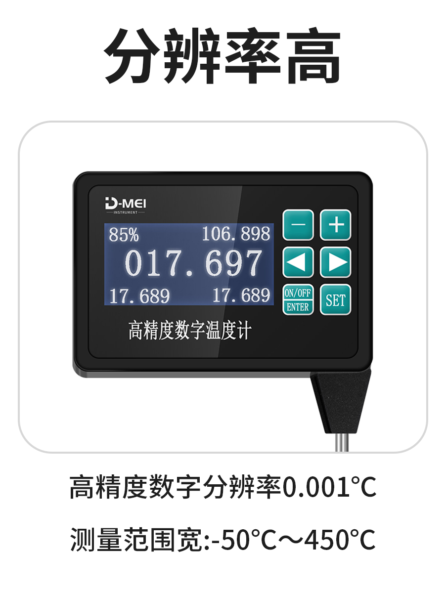 高精度數(shù)字溫度計,是工業(yè)溫度校準,計量測量領域的新選擇,精度高,準確度可達±0.05,方便快捷,不僅可以在實驗室作為溫度標準,更可以在工業(yè)現(xiàn)場提供可靠、準確、高精度的溫度測量。設備可配套溫濕度檢定箱使用,滿足《JJF1076-2020數(shù)字式溫度計校準規(guī)范》