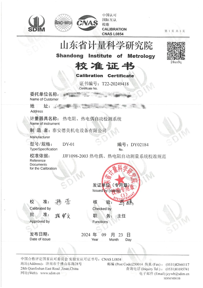 | 上一條:貴金屬熱電偶檢定爐(800~1600℃)校準(zhǔn)證書(shū) | 下一條:廉金屬熱電偶檢定爐-校準(zhǔn)證書(shū) |