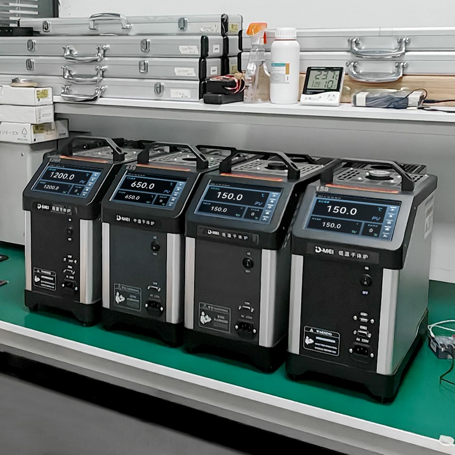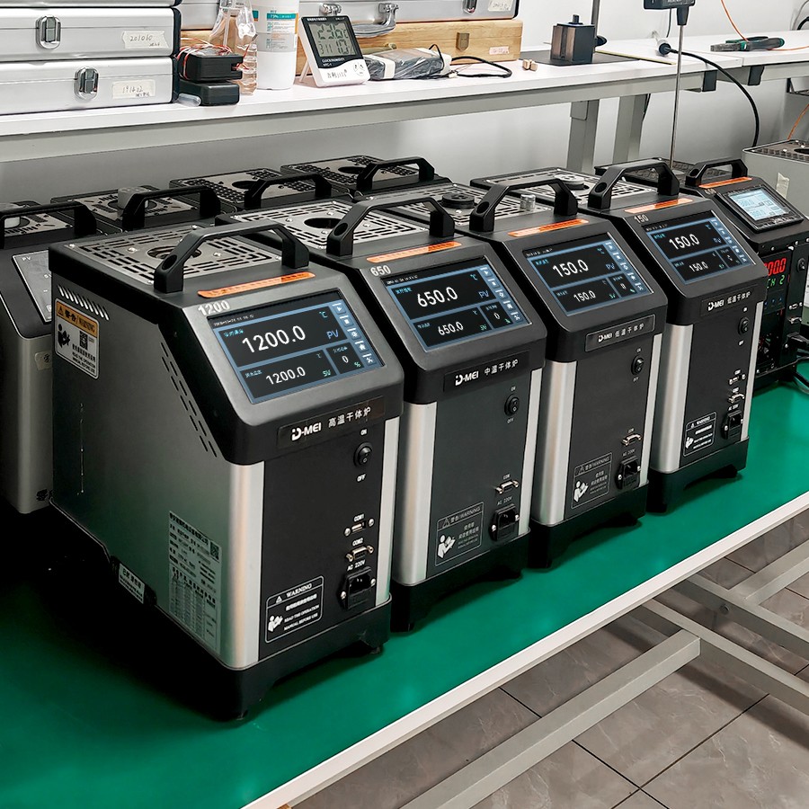 干體爐能夠提供一個穩(wěn) 定的、均勻的、準(zhǔn)確的溫度環(huán)境(溫場),提供了類似于恒溫槽(液浴槽)的性能,但是干體爐卻攜帶方便,不需要放置液體。干體爐到達預(yù)定溫度點并且溫度穩(wěn) 定的時間比恒溫槽快5到10倍,這樣可以大大節(jié)省校準(zhǔn)人員的時間,提高溫度檢定速度。干體爐的便攜性使其能夠到現(xiàn)場進行校準(zhǔn)工作,從而解決了恒溫槽在運輸移動上的困難。 通過干體爐可以方便地校準(zhǔn)溫度傳感器、水銀溫度計、膨脹式溫度計、熱電偶、熱電阻、等溫度傳感器。