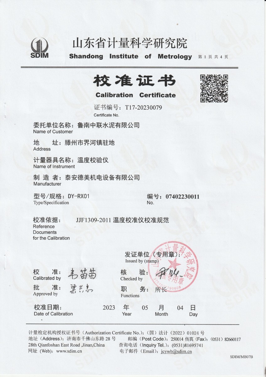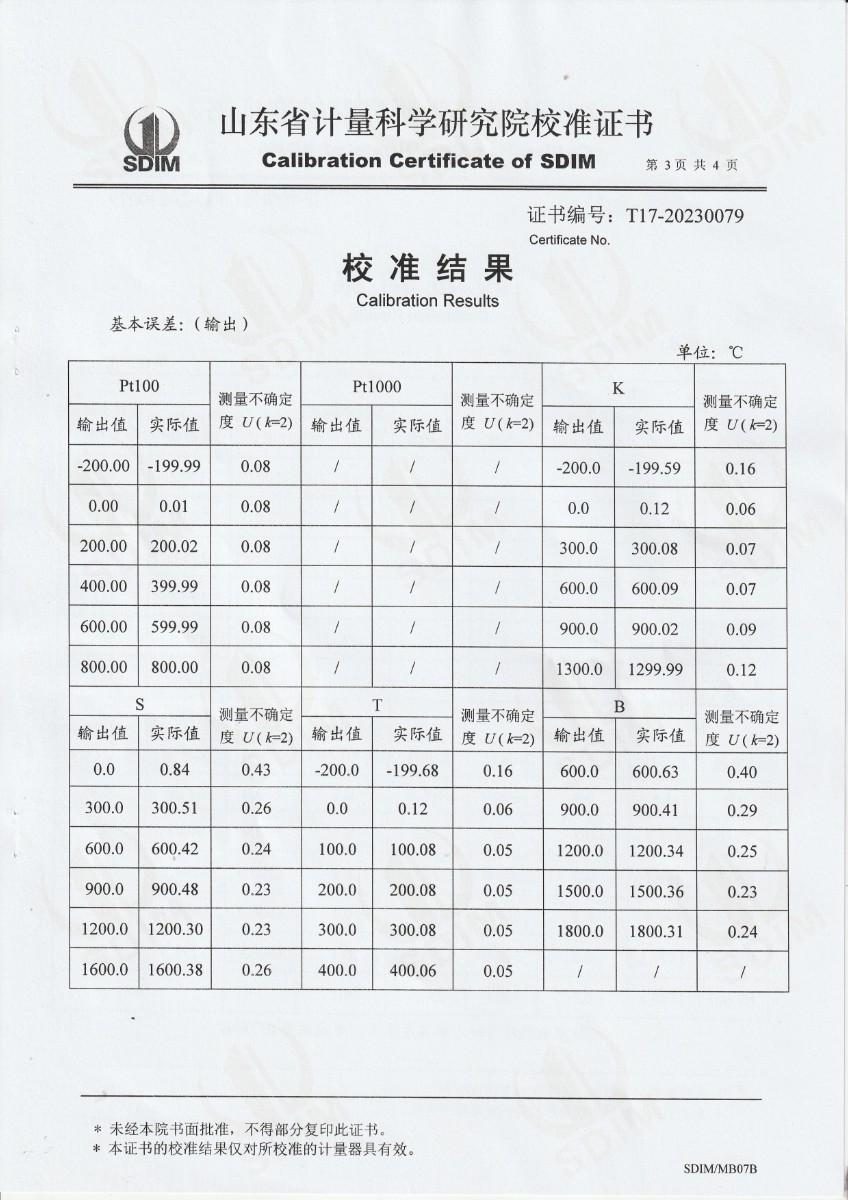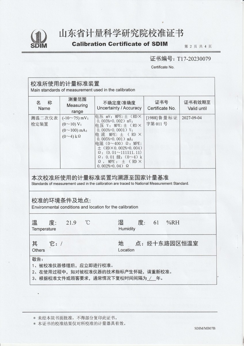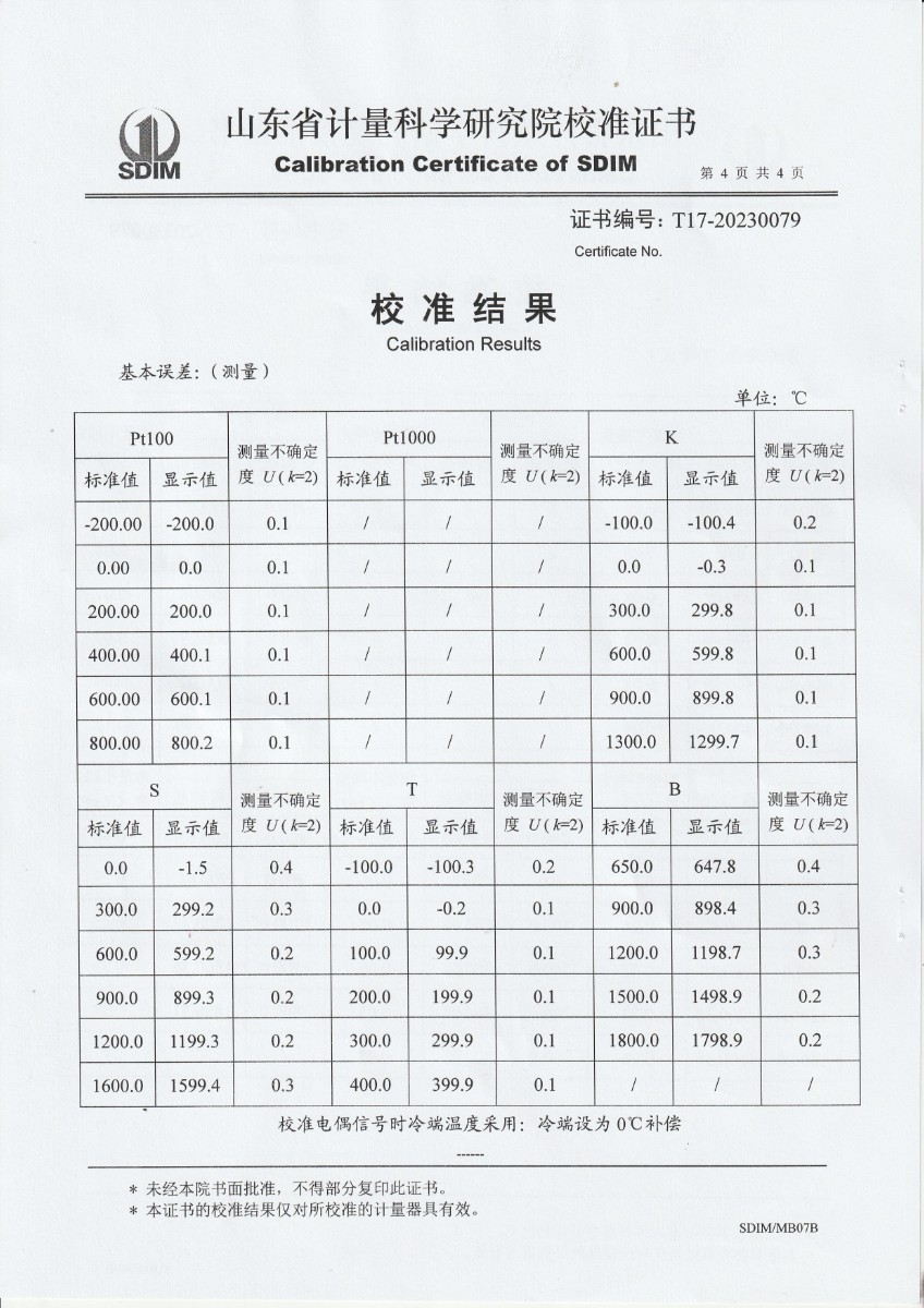 | 上一條:魯南中聯(lián)水泥有限公司 高精度數(shù)字溫度計(jì) 校準(zhǔn)證書 | 下一條:廉金屬熱電偶檢定爐-校準(zhǔn)證書 |