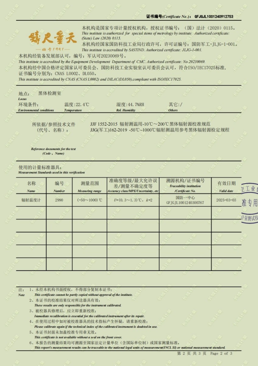 | 上一條:高溫黑體爐(300-1200℃)校準(zhǔn)證書 | 下一條:廉金屬熱電偶檢定爐-校準(zhǔn)證書 |