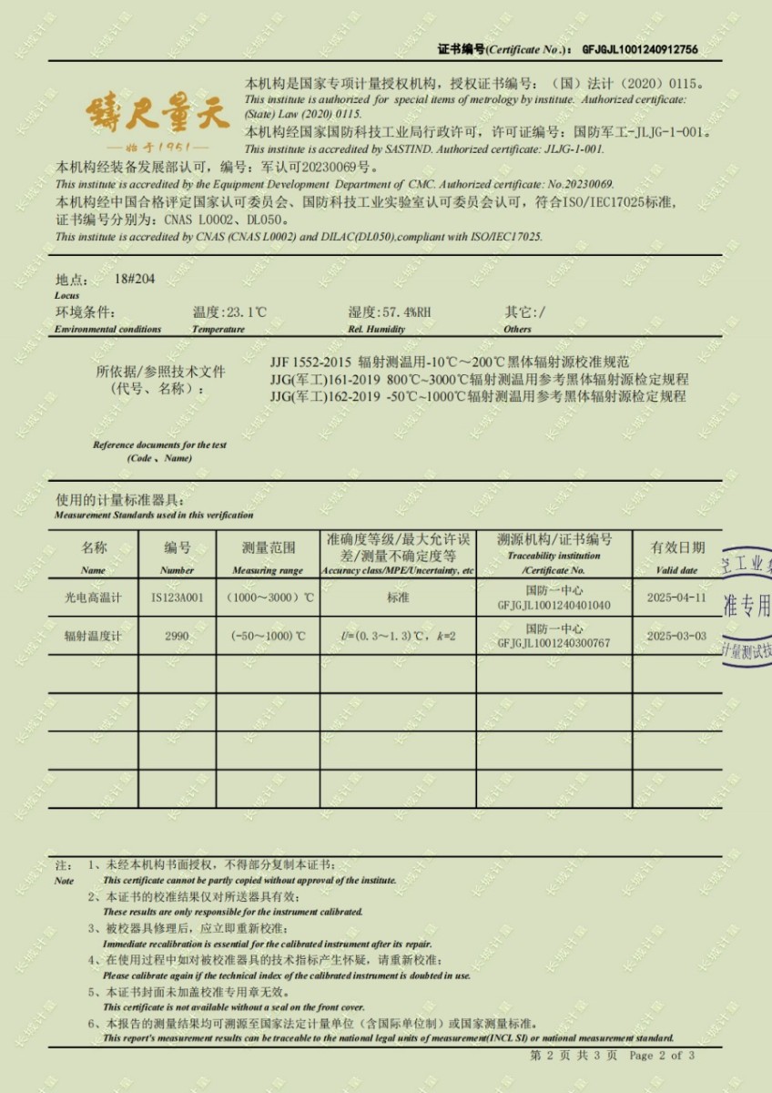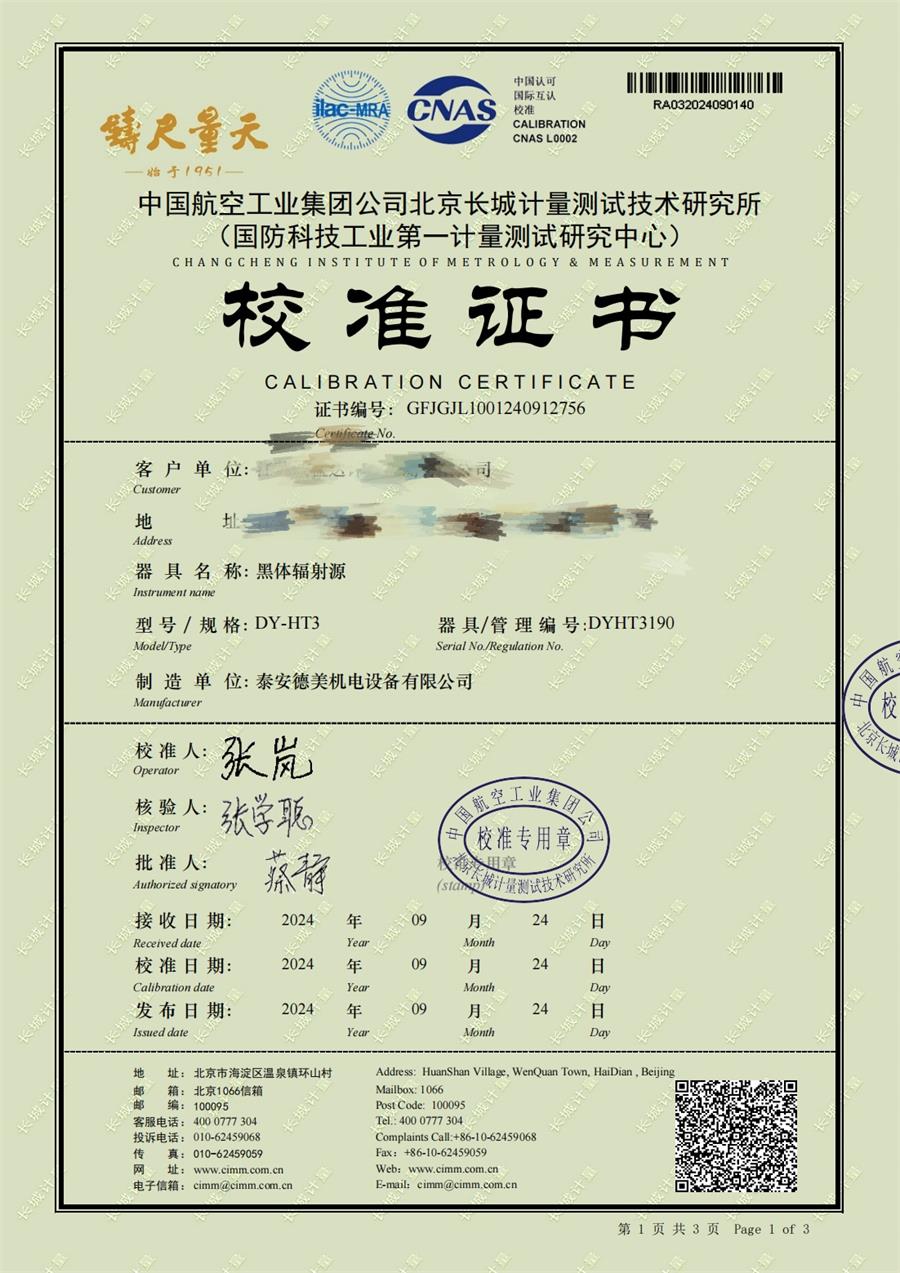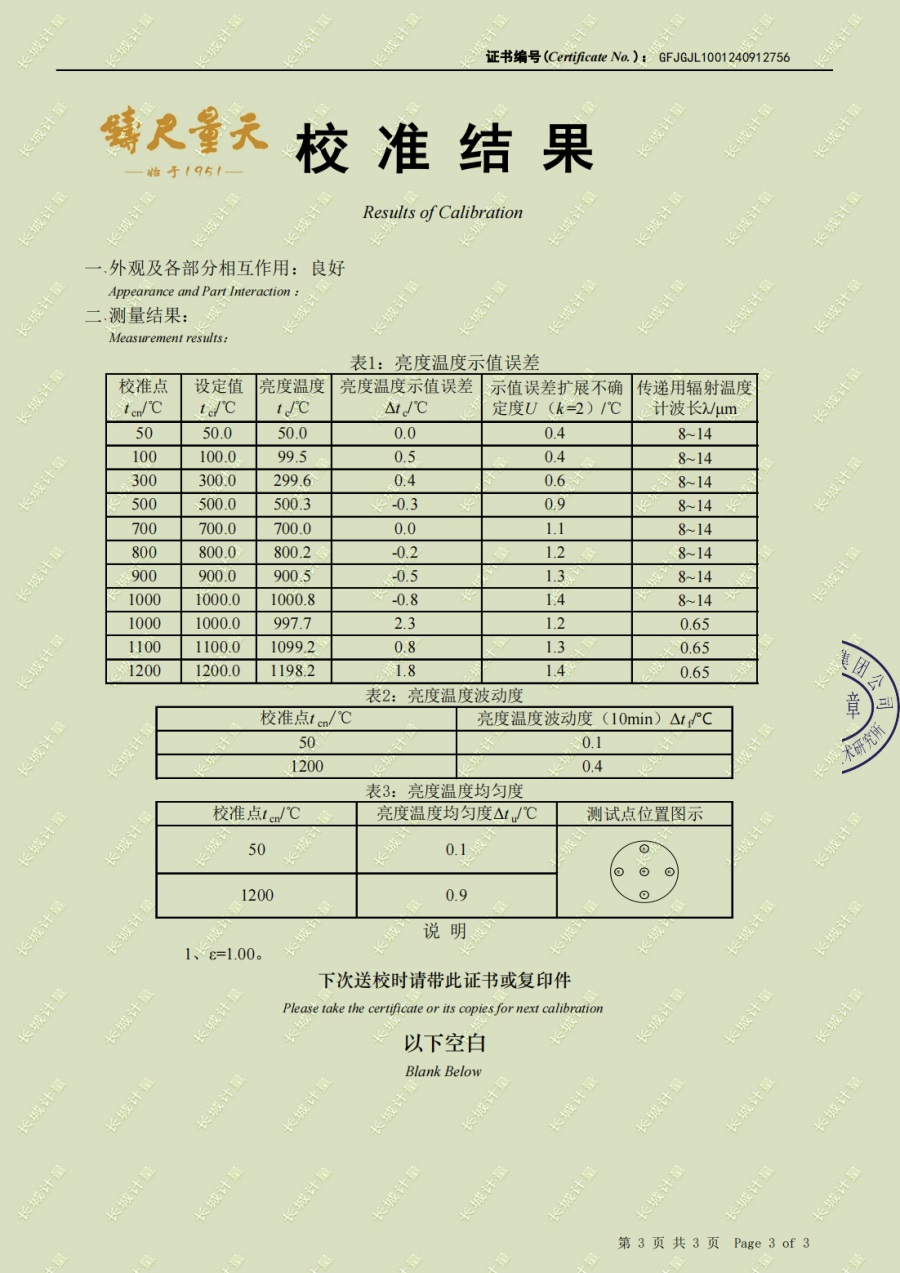 | 上一條:中溫黑體爐(50-500℃)校準(zhǔn)證書 | 下一條:廉金屬熱電偶檢定爐-校準(zhǔn)證書 |