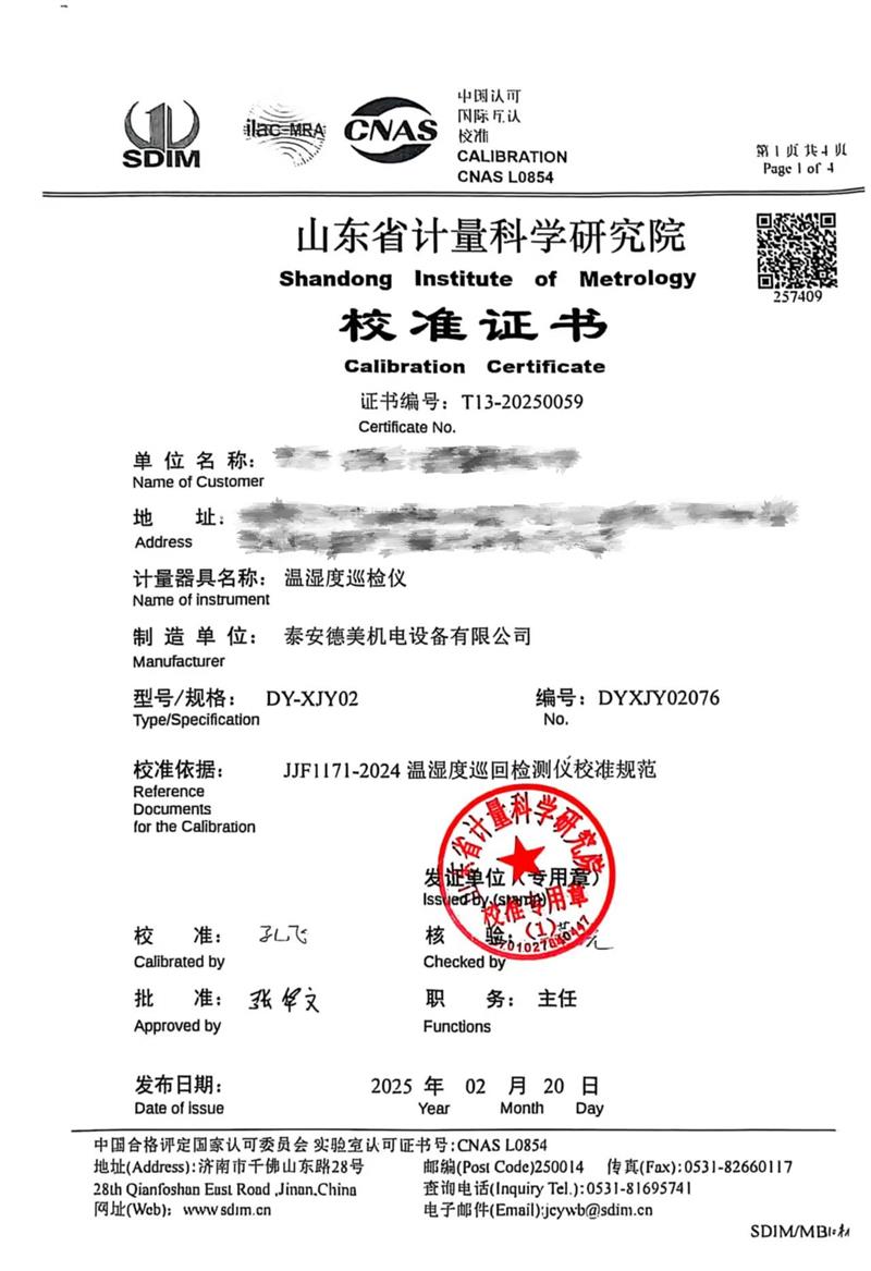 溫濕度巡檢儀校準(zhǔn)證書 2025-2-22 本文被閱讀 5771 次