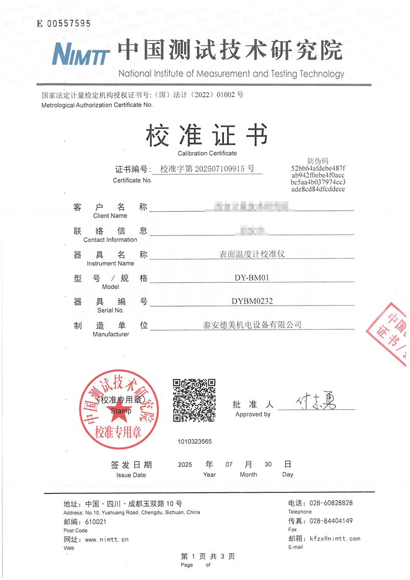 表面溫度計校準(zhǔn)儀(40-400℃)校準(zhǔn)證書 2025-8-6 本文被閱讀 3378 次