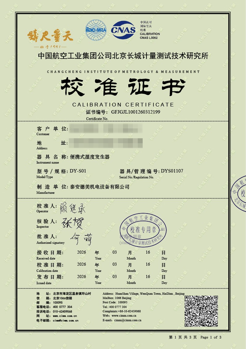 濕度發(fā)生器-校準(zhǔn)證書 2026-3-25 本文被閱讀 1229 次