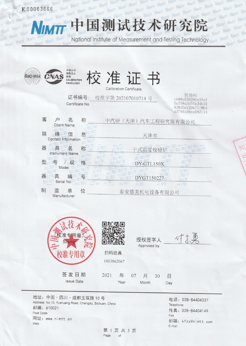 中汽研(天津)汽車工程研究院有限公司-干式溫度校驗爐 2021-8-6 本文被閱讀 21960 次