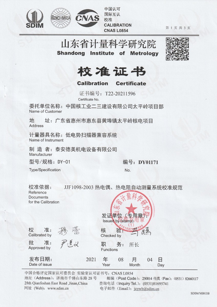 | 上一條:DY-HTM面源黑體爐,輻射面100mm(-20℃~600℃) | 下一條:廉金屬熱電偶檢定爐-校準(zhǔn)證書(shū) |
