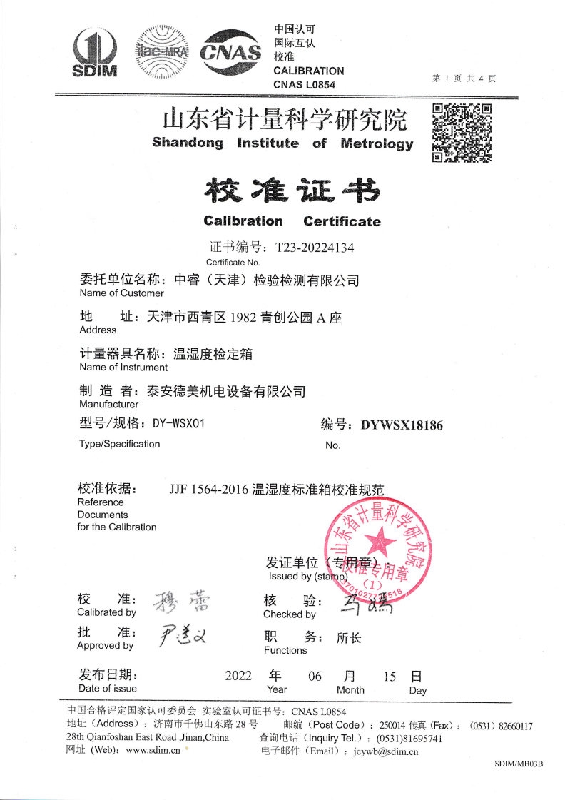 中睿(天津)檢驗(yàn)檢測(cè)有限公司-溫濕度檢定箱