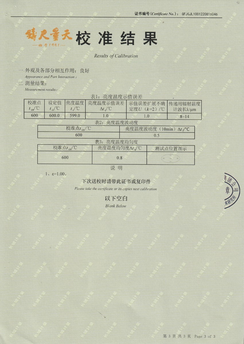 | 上一條:中國(guó)科學(xué)院長(zhǎng)春光學(xué)精密機(jī)械與物理研究所-黑體爐DY-HT3-2 | 下一條:廉金屬熱電偶檢定爐-校準(zhǔn)證書 |