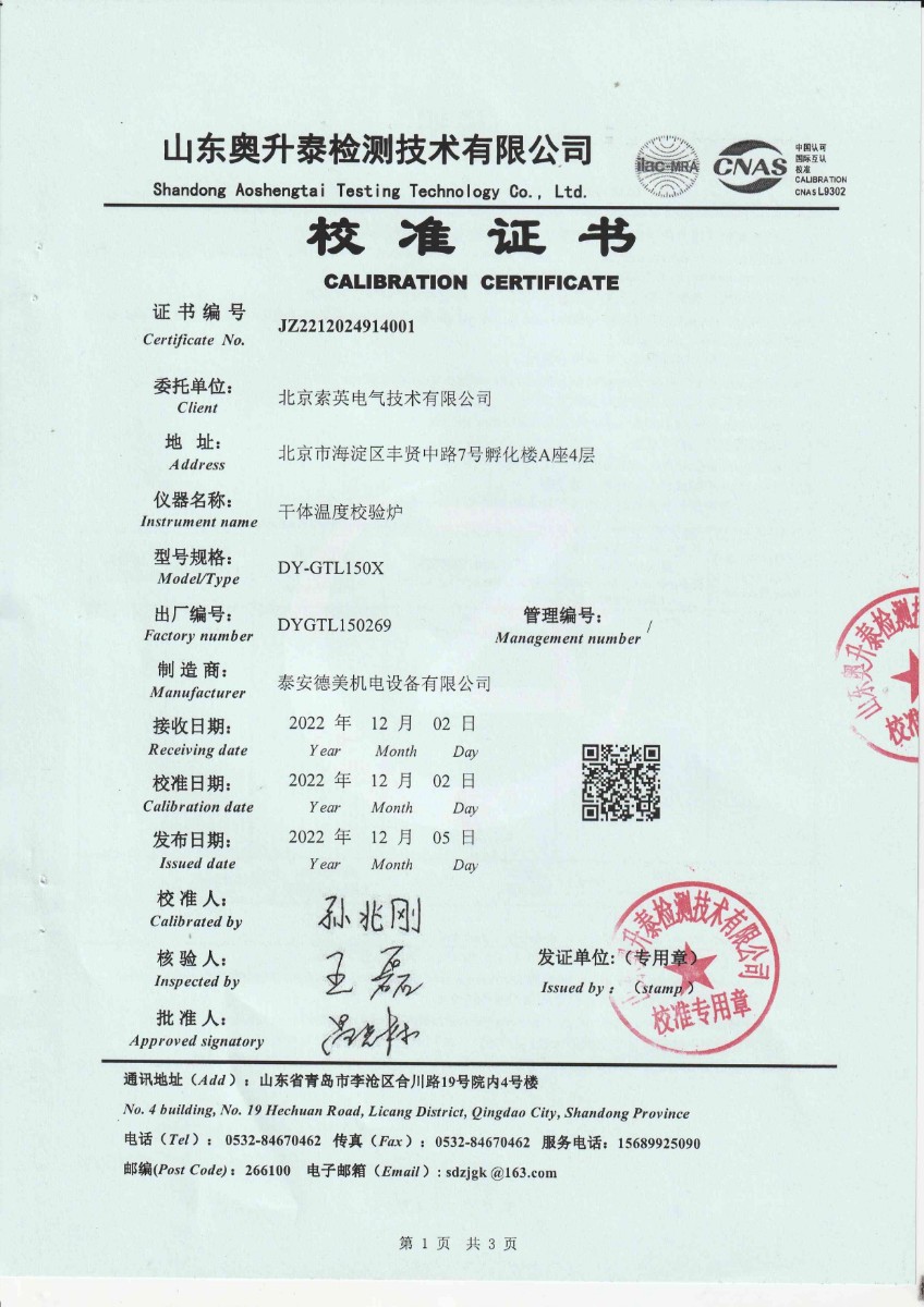 上一條:北京索英電氣技術有限公司 干體溫度校驗爐下一條:廉金屬熱電偶檢定爐-校準證書
