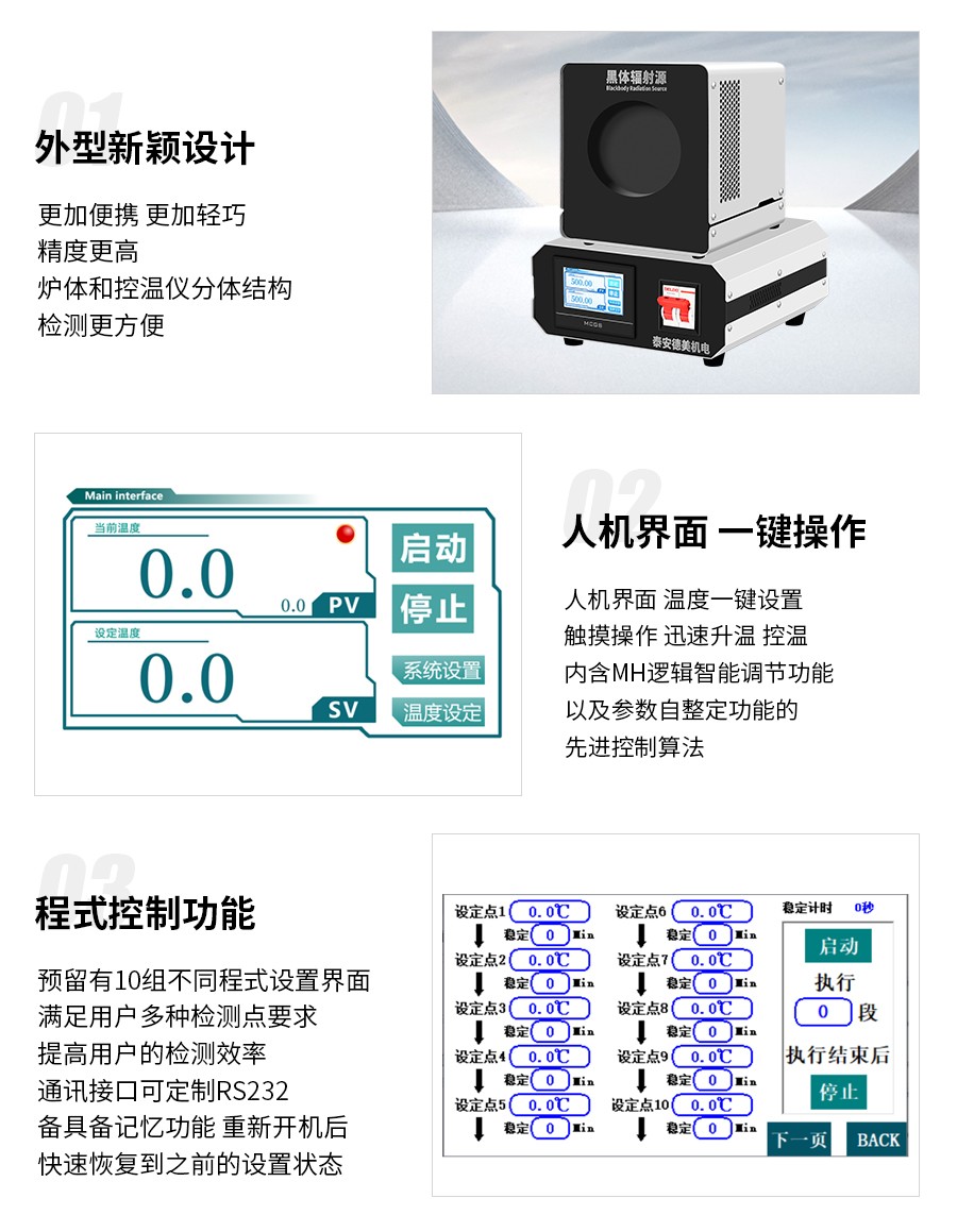 標(biāo)準(zhǔn)黑體作為標(biāo)準(zhǔn)輻射源,主要用于校準(zhǔn)輻射溫度計(jì)、紅外溫度計(jì)和輻射溫度傳感探測(cè)器。我公司目前具有先進(jìn)的黑體技術(shù),產(chǎn)品種類全、溫度范圍寬的黑體系列產(chǎn)品。產(chǎn)品體積小、重量輕、便于攜帶,不僅適合各級(jí)計(jì)量機(jī)構(gòu)實(shí)驗(yàn)室校準(zhǔn)輻射溫度計(jì)使用,同時(shí)可以用于現(xiàn)場(chǎng)校準(zhǔn)。面源黑體輻射源是紅外輻射工作標(biāo)準(zhǔn),廣泛應(yīng)用在紅外探測(cè)器的研制過(guò)程中的工藝測(cè)試和鑒定試驗(yàn)的技術(shù)指標(biāo)測(cè)試中。同時(shí),面源黑體輻射源作為紅外成像棱準(zhǔn)裝置的核心設(shè)備,配合紅外準(zhǔn)直光學(xué)系統(tǒng)和紅外靶標(biāo),完成紅外成像系統(tǒng)等關(guān)鍵技術(shù)指標(biāo)測(cè)試和性能評(píng)估??梢詽M足我國(guó)新研制的紅外成像制導(dǎo)武器中紅外成像器的測(cè)試需求,可以滿足廣泛應(yīng)用于醫(yī)療、建筑、安全監(jiān)控、環(huán)境檢測(cè)等行業(yè)紅外熱像儀的測(cè)試需求。