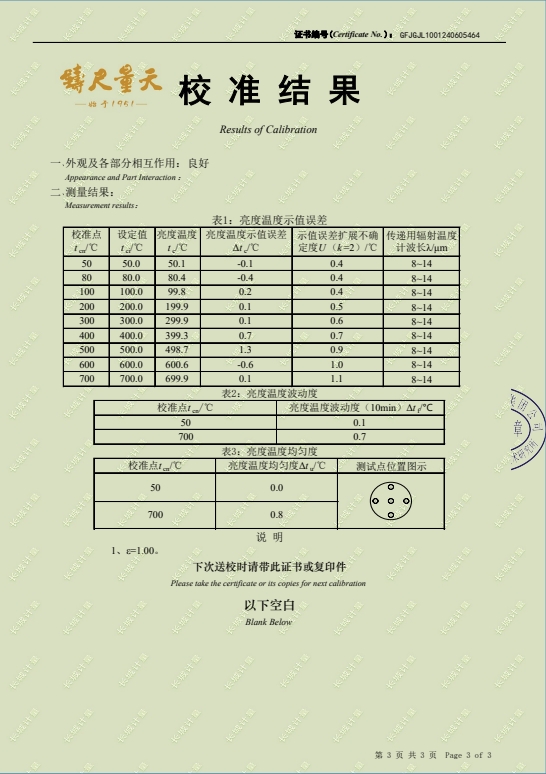 | 上一條:腔式黑體輻射源(300-1200℃)304所證書 | 下一條:廉金屬熱電偶檢定爐-校準(zhǔn)證書 |
