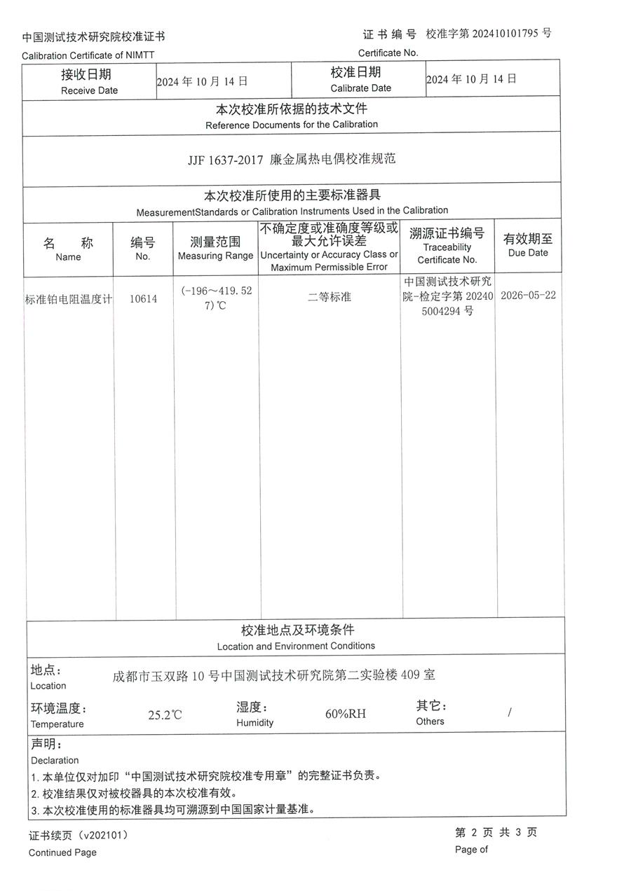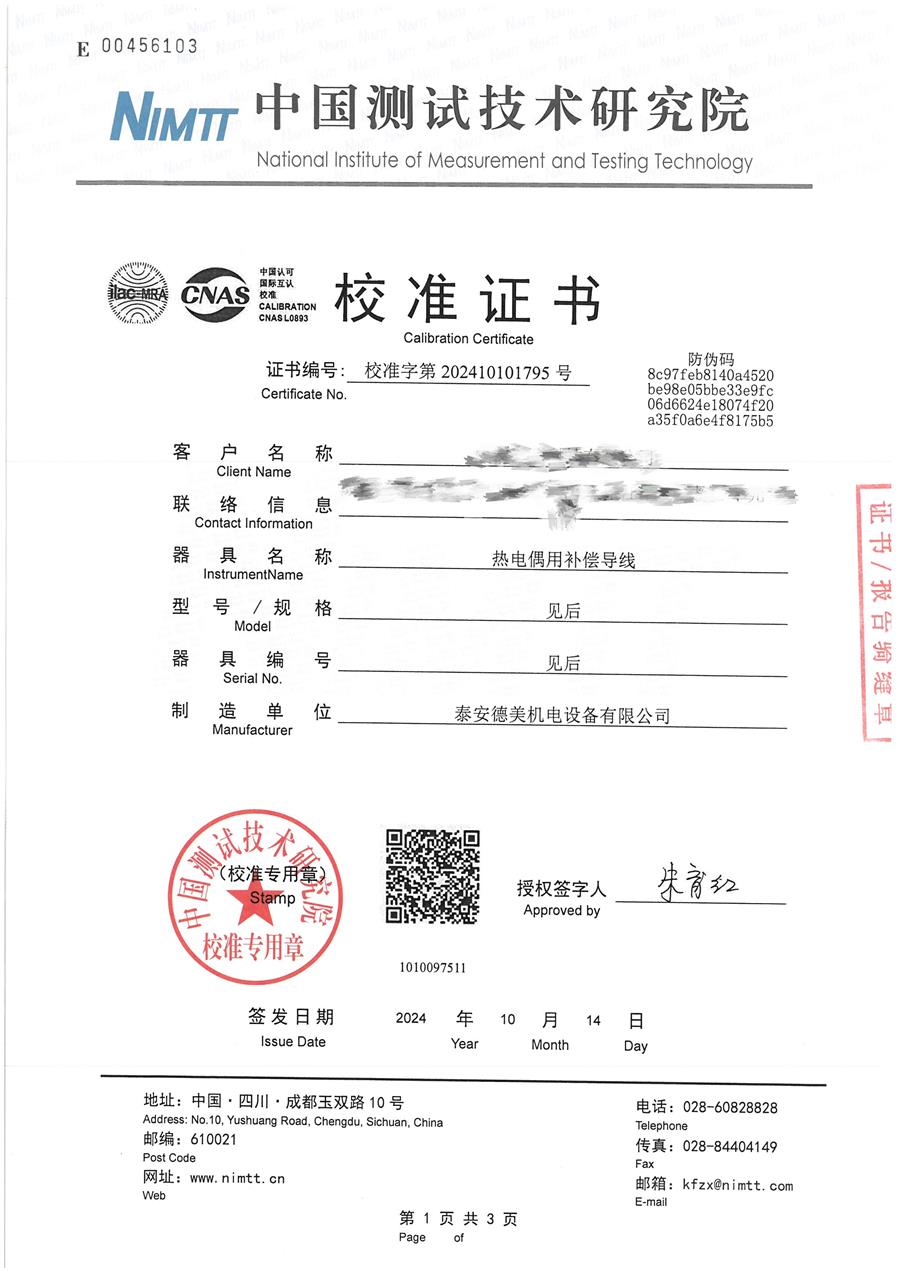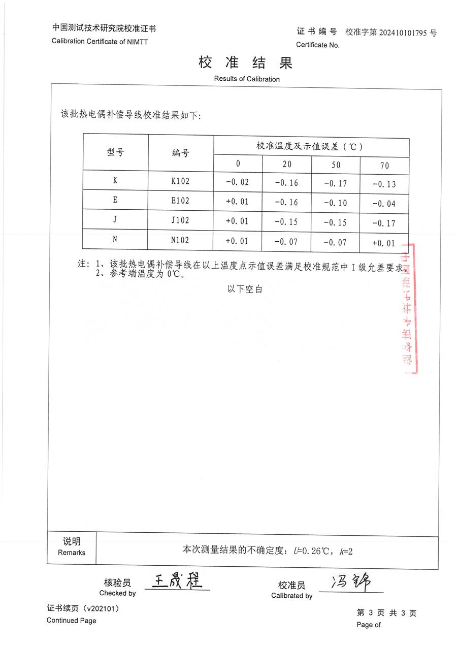 熱電偶用補償導線KEJN校準證書 2024-10-17 本文被閱讀 7642 次