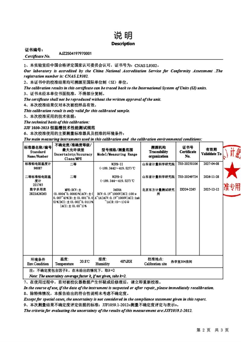 | 上一條:干體溫度校驗(yàn)爐(300-1200℃)校準(zhǔn)證書 | 下一條:廉金屬熱電偶檢定爐-校準(zhǔn)證書 |