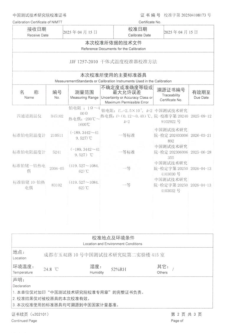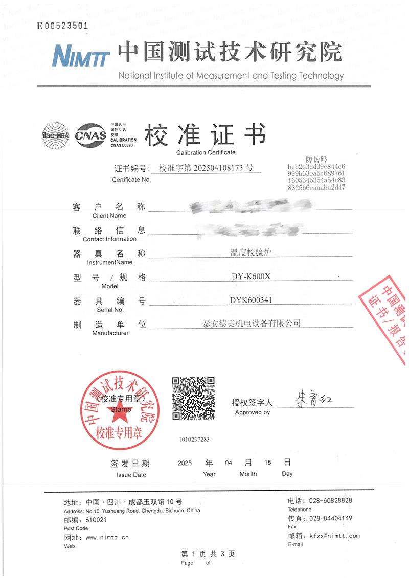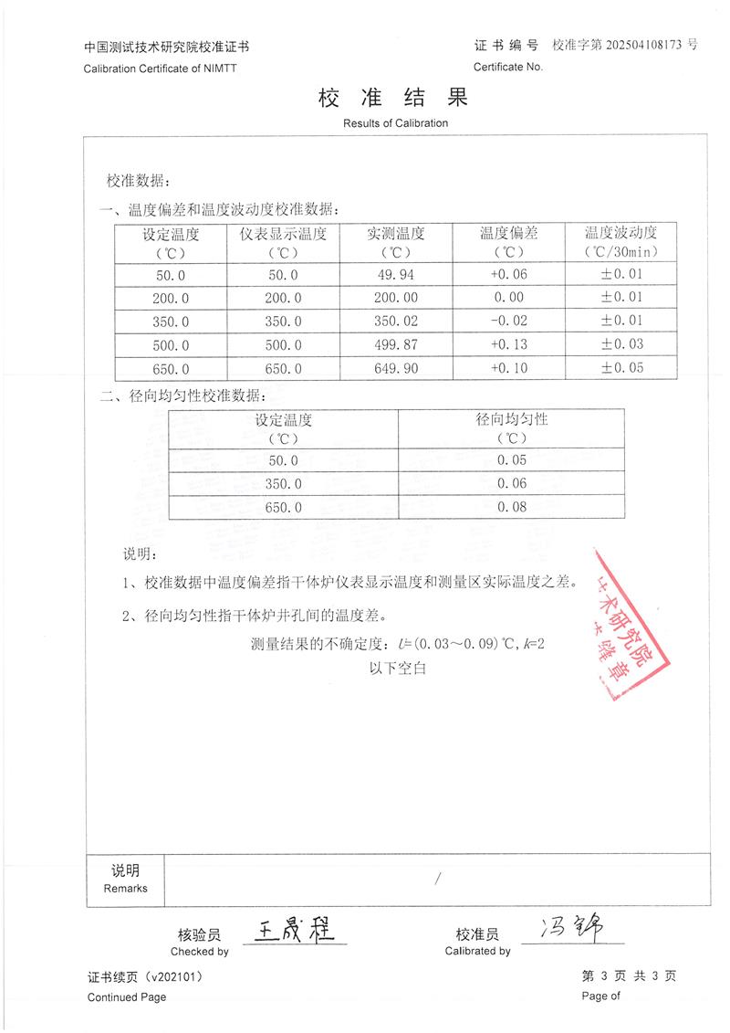 溫度校驗爐(50~650℃)校準證書 2025-4-30 本文被閱讀 4175 次
