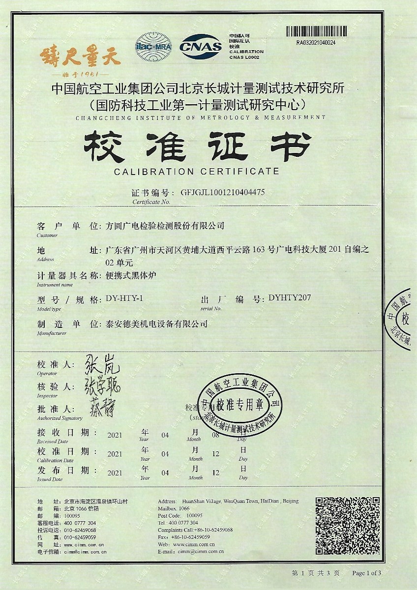 | 上一條:上海紅力檢測(cè)技術(shù)有限公司-耳溫計(jì)黑體空腔 | 下一條:數(shù)字溫度計(jì)-校準(zhǔn)證書 |