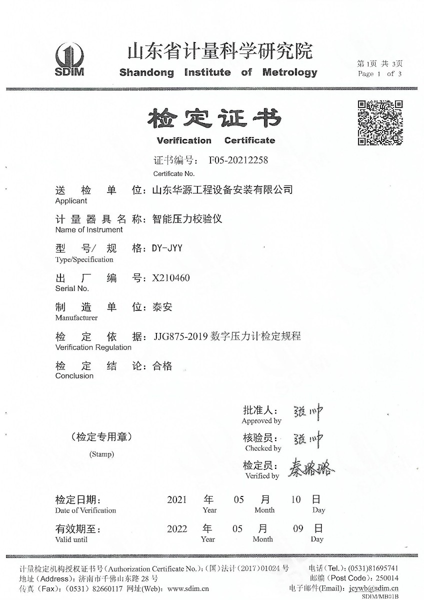 | 上一條:山東華源工程設(shè)備安裝有限公司-智能壓力校驗(yàn)儀X210459 | 下一條:廉金屬熱電偶檢定爐-校準(zhǔn)證書(shū) |