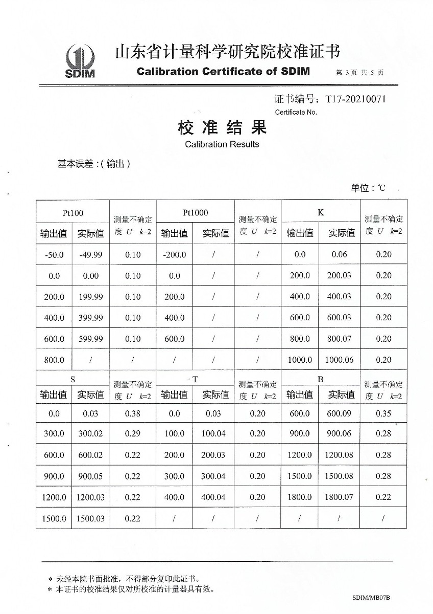 上一條:山東華源工程設備安裝有限公司-智能壓力校驗儀X210461下一條:廉金屬熱電偶檢定爐-校準證書