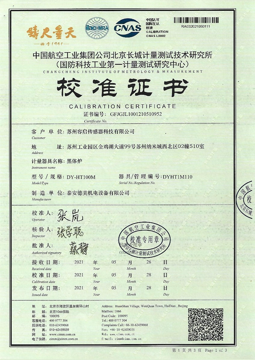 蘇州容啟傳感器科技有限公司-黑體爐 2021-6-5 本文被閱讀 14921 次
