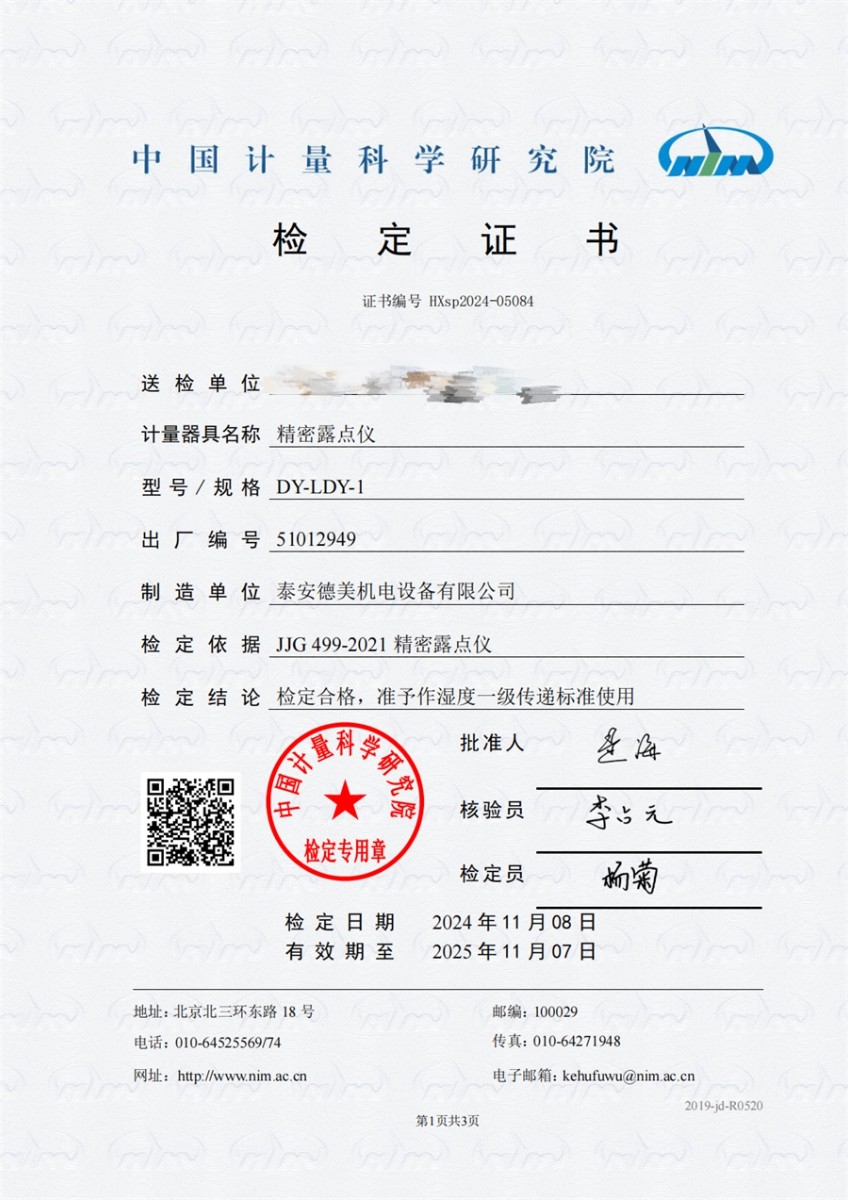 冷鏡式露點儀檢定證書 2024-11-21 本文被閱讀 7681 次