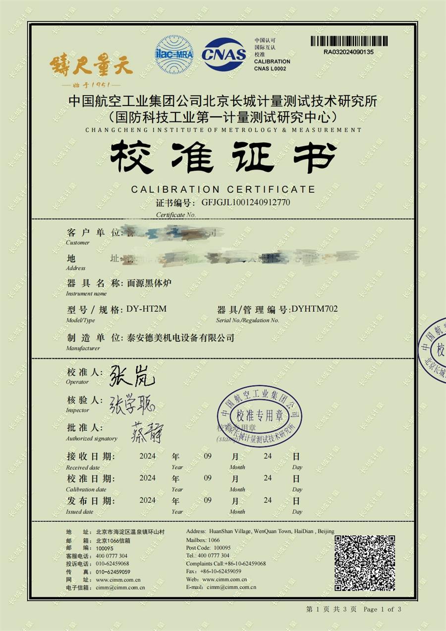 面源黑體爐(室溫+5-300℃)校準(zhǔn)證書 2024-10-17 本文被閱讀 7121 次