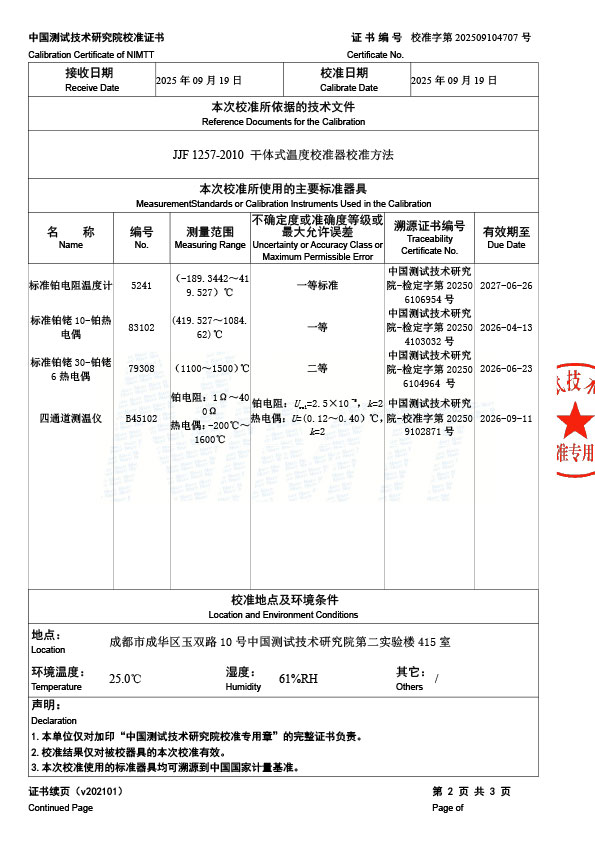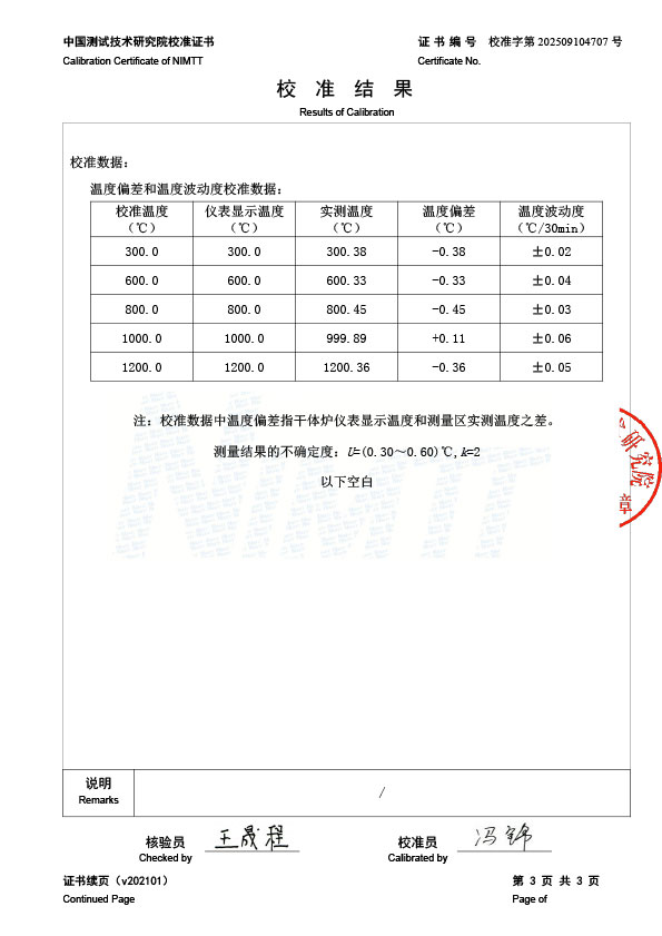 高溫干體爐(300-1200℃)校準證書 2025-9-22 本文被閱讀 2440 次