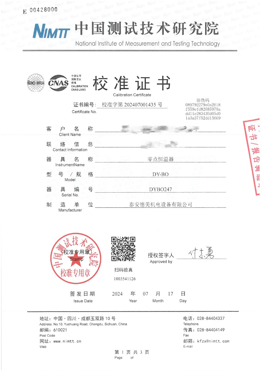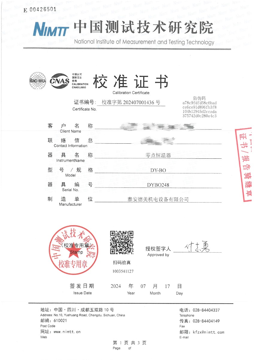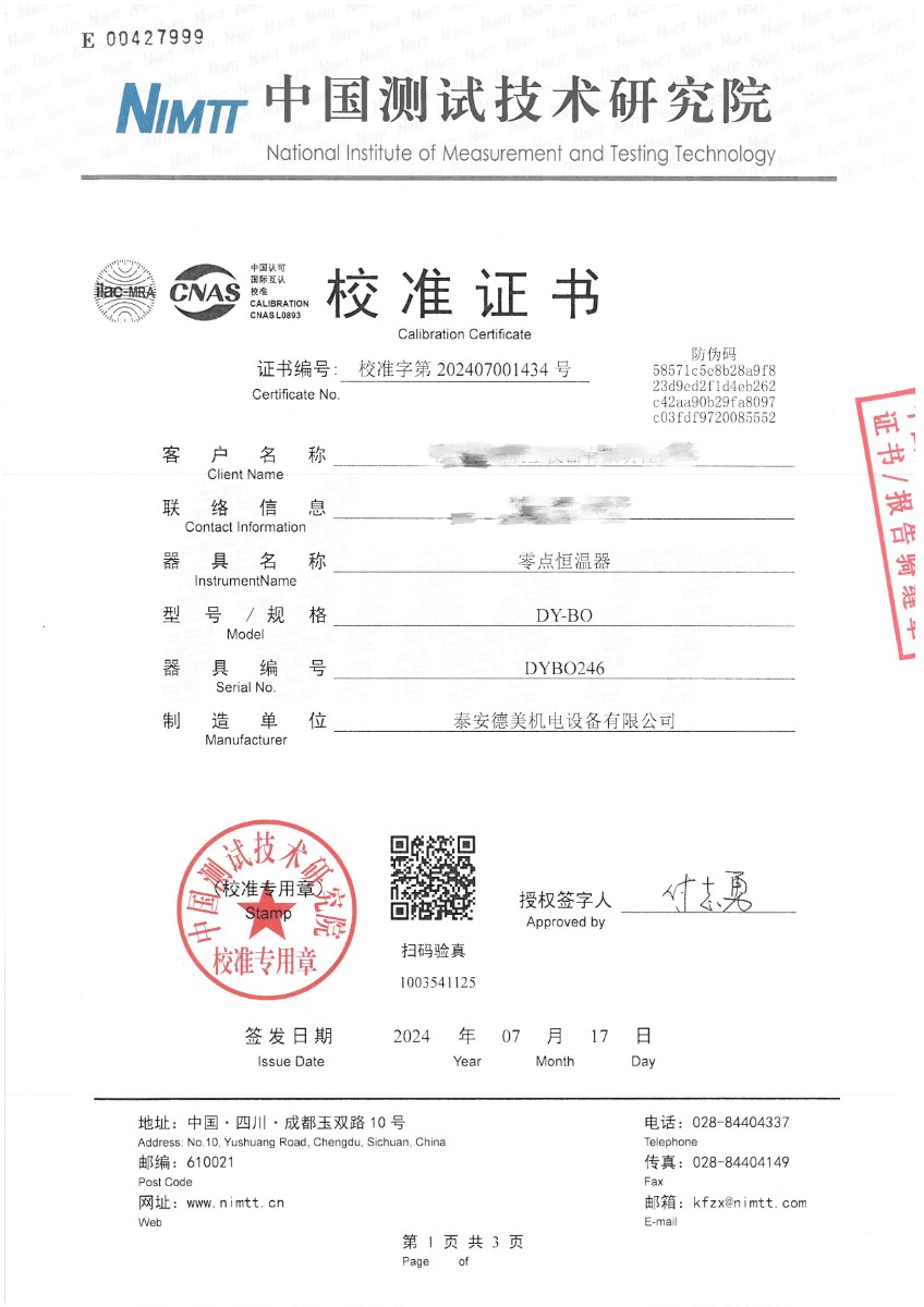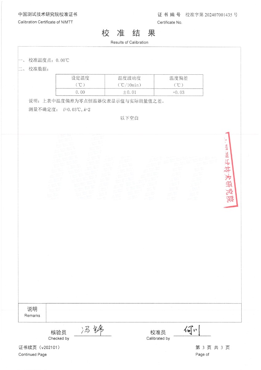 零點恒溫器校準(zhǔn)證書 2024-7-19 本文被閱讀 7603 次