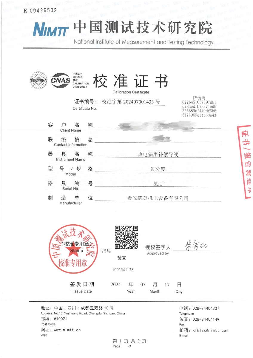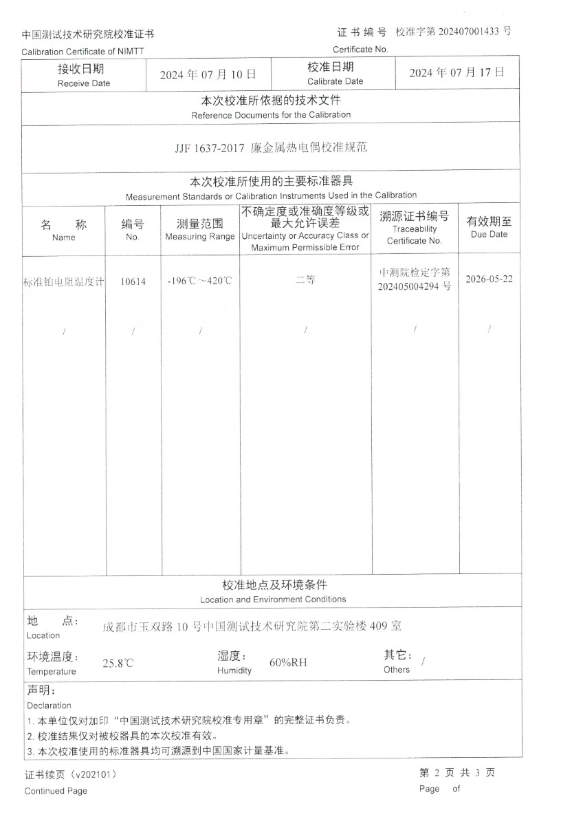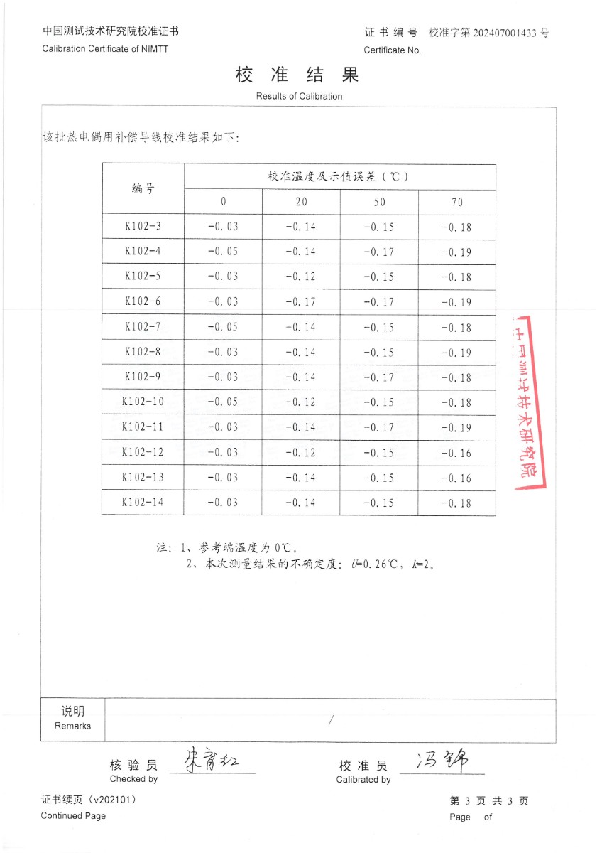 熱電偶用補償導線K分度校準證書 2024-7-19 本文被閱讀 7699 次