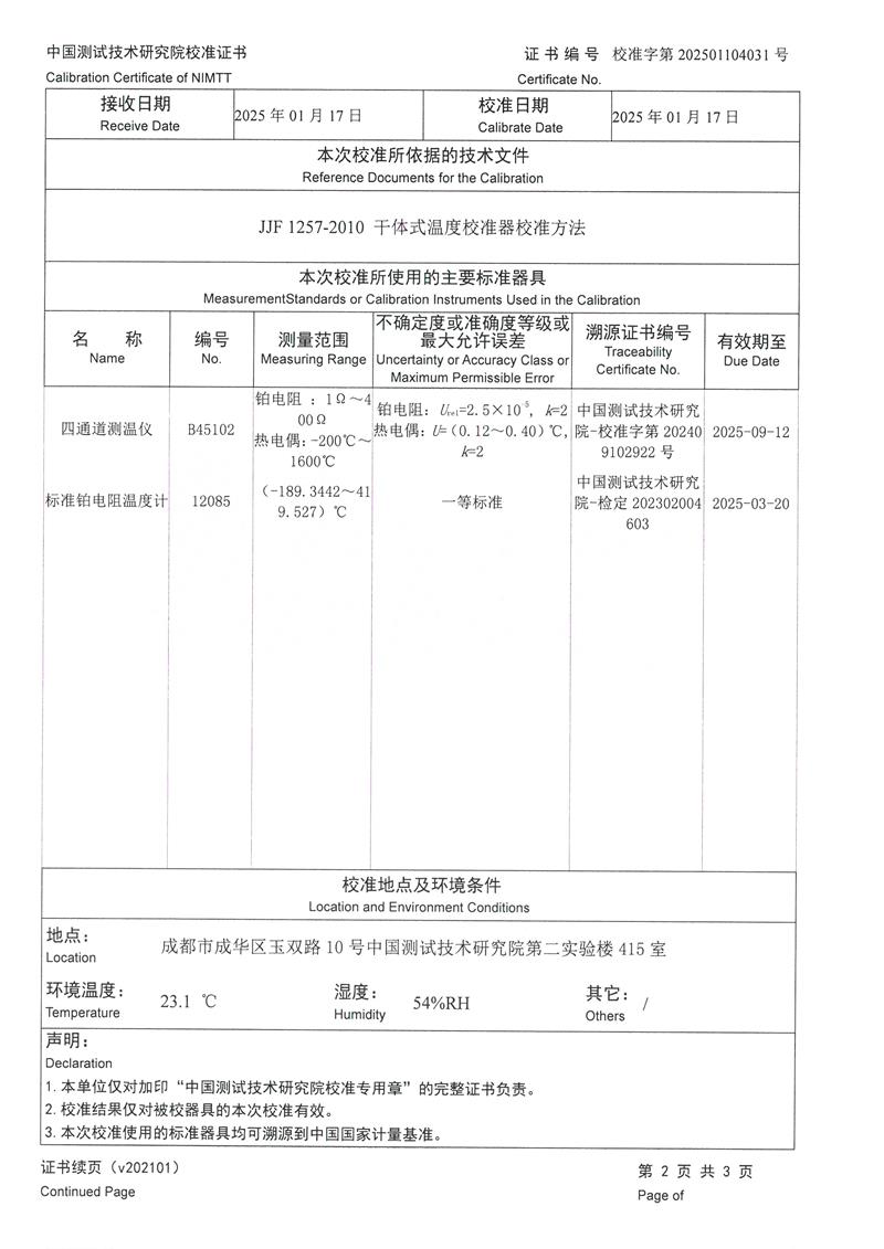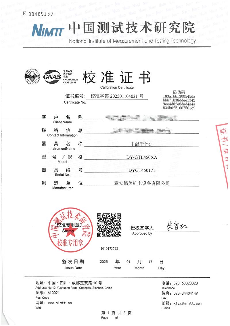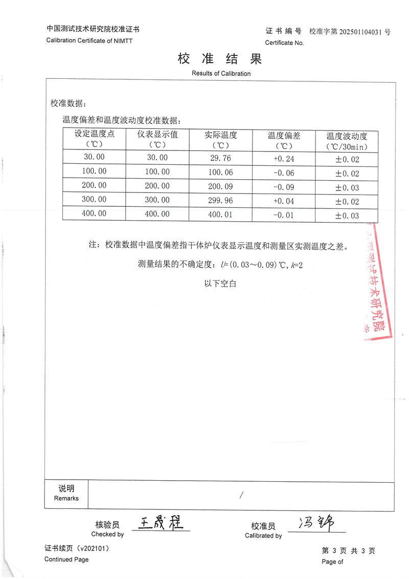 中溫干體爐(室溫+5~400℃)校準(zhǔn)證書(shū) 2025-1-20 本文被閱讀 5961 次