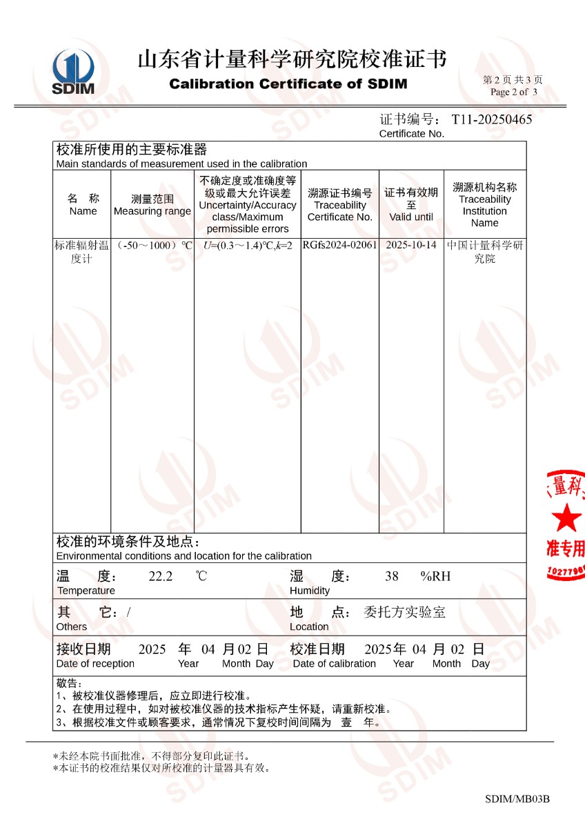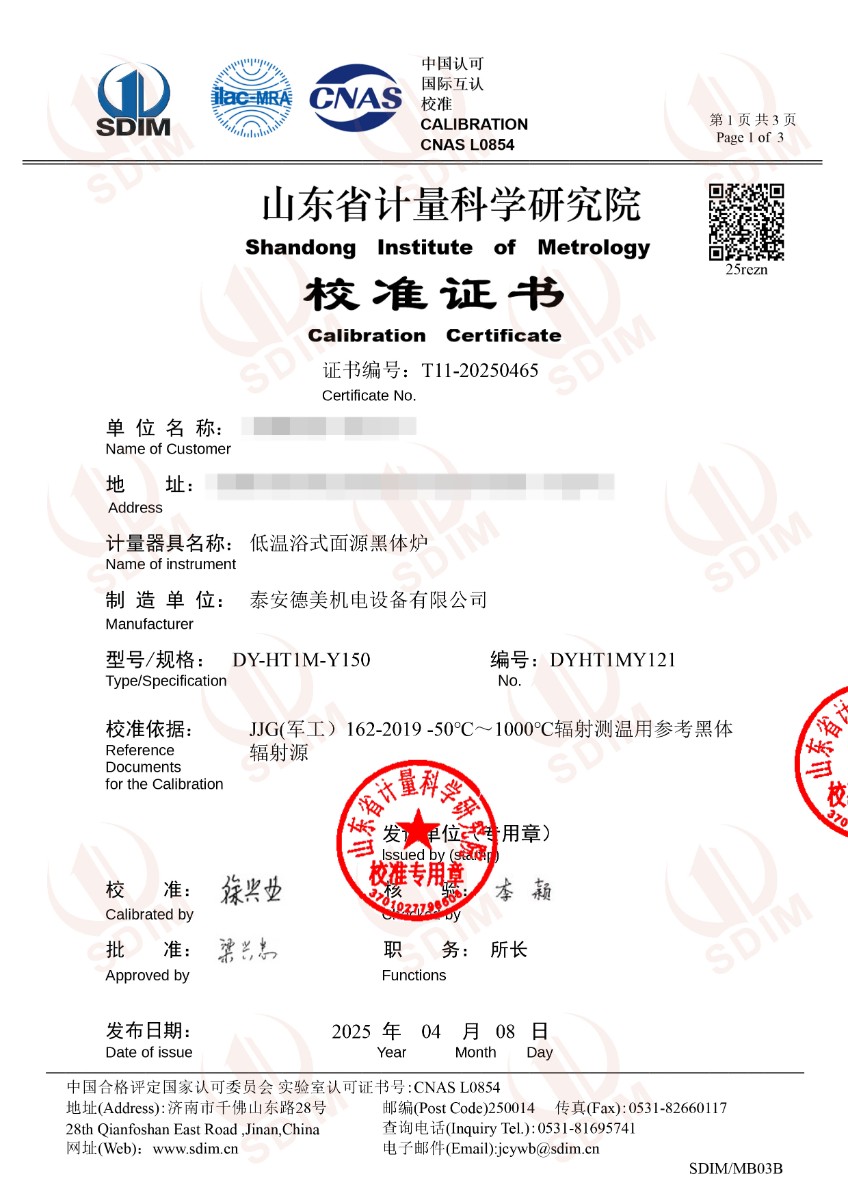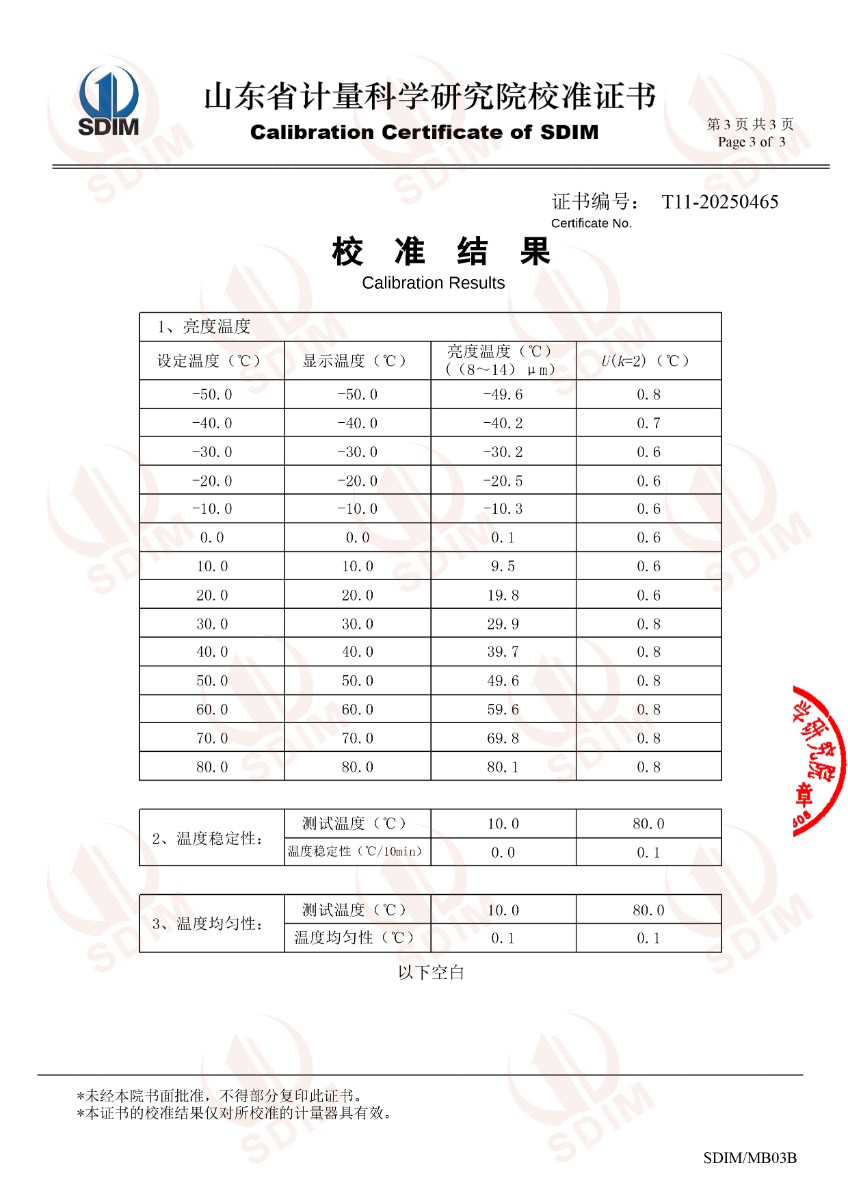 低溫浴式面源黑體爐(-50-80℃)校準(zhǔn)證書 2025-4-9 本文被閱讀 4675 次