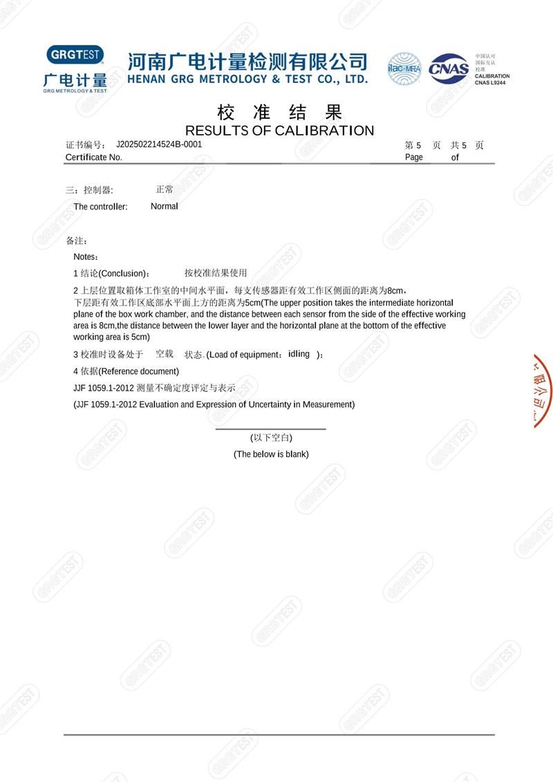 | 上一條:低溫浴式面源黑體爐(-50-80℃)校準(zhǔn)證書 | 下一條:廉金屬熱電偶檢定爐-校準(zhǔn)證書 |