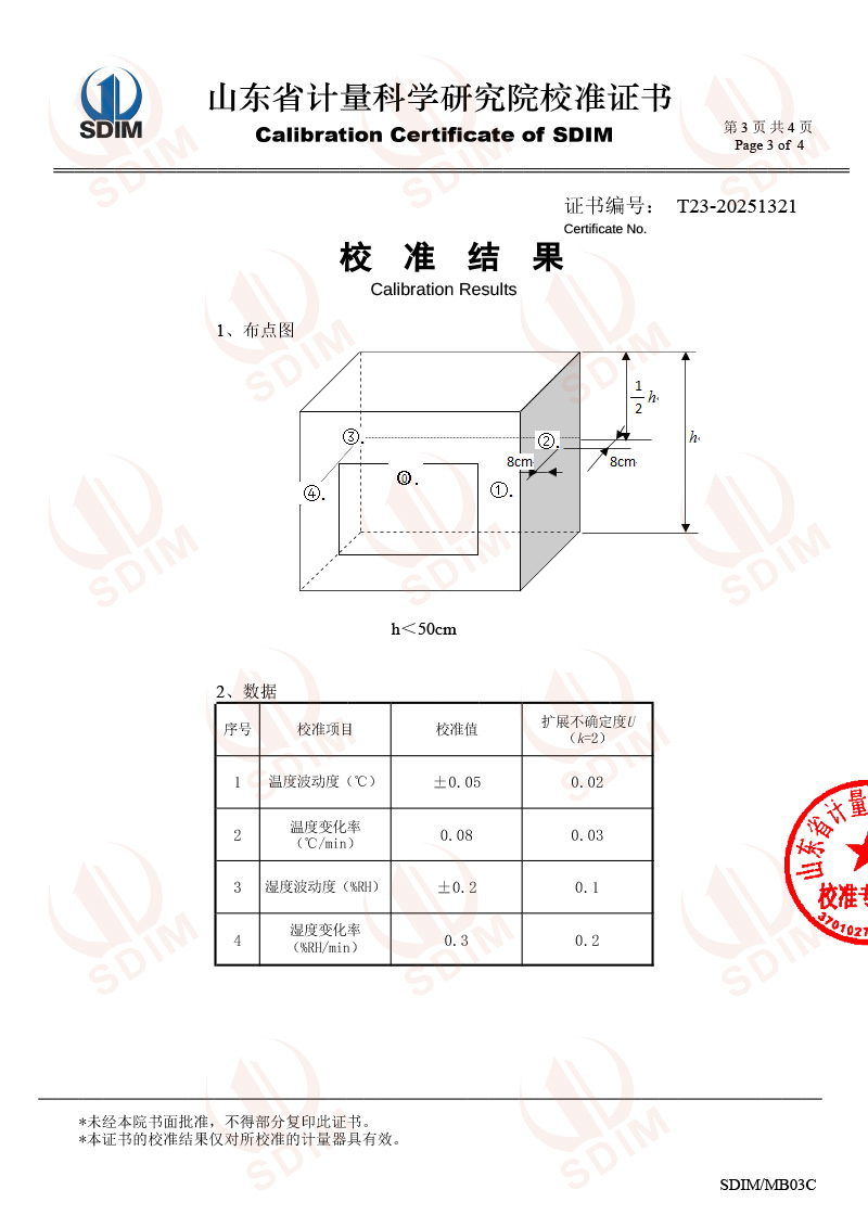 便攜溫濕度檢定箱(5-50℃)校準(zhǔn)證書