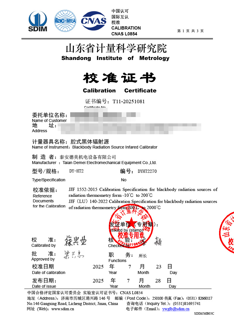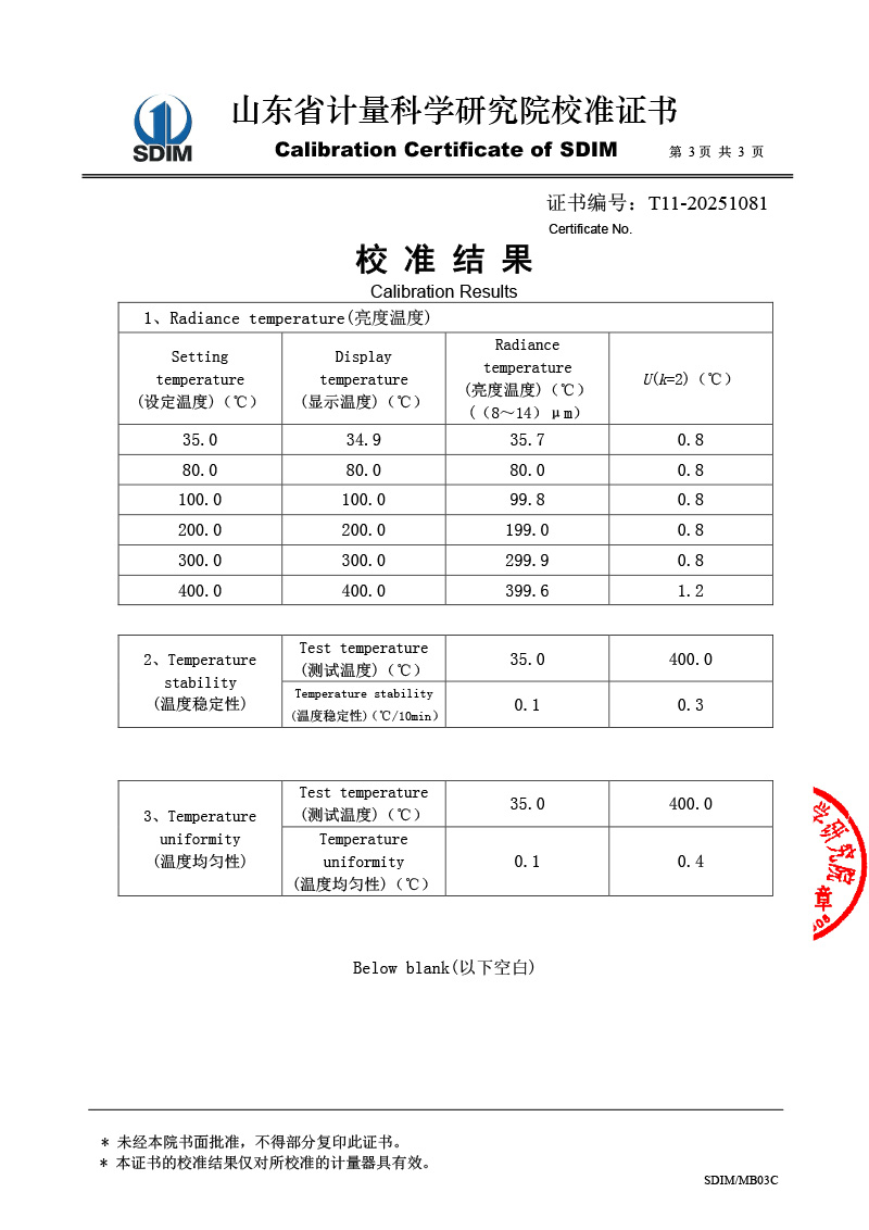 腔式黑體輻射源(室溫+5-400℃)校準(zhǔn)證書 2025-7-29 本文被閱讀 3470 次