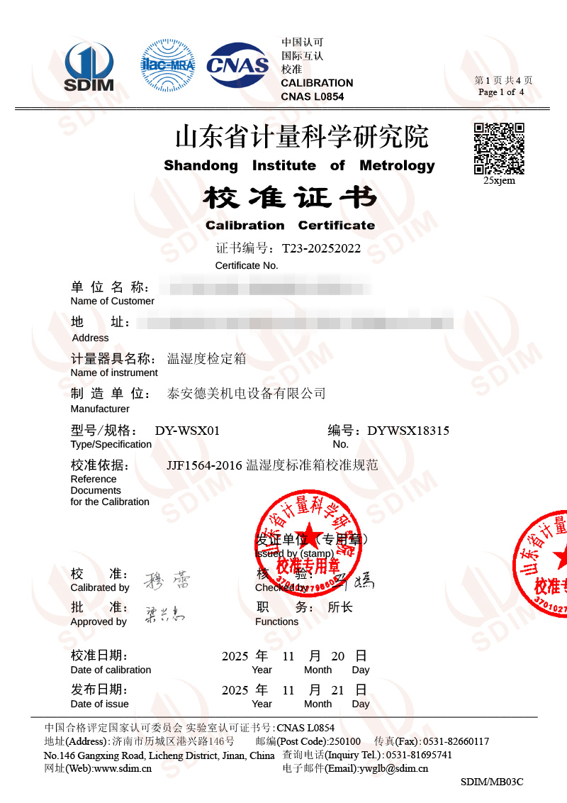 溫濕度檢定箱校準證書 2025-11-25 本文被閱讀 2088 次