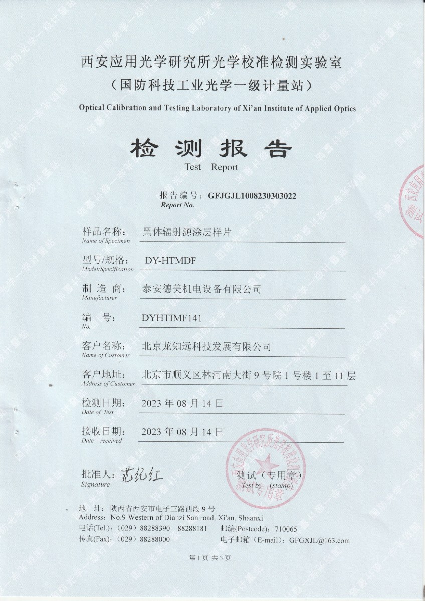 | 上一條:北京龍知遠(yuǎn)科技發(fā)展有限公司-黑體輻射源涂層樣片DYHT1MF140檢測報告 | 下一條:廉金屬熱電偶檢定爐-校準(zhǔn)證書 |