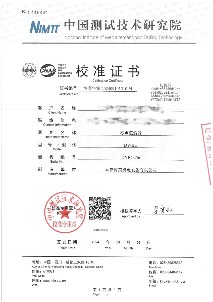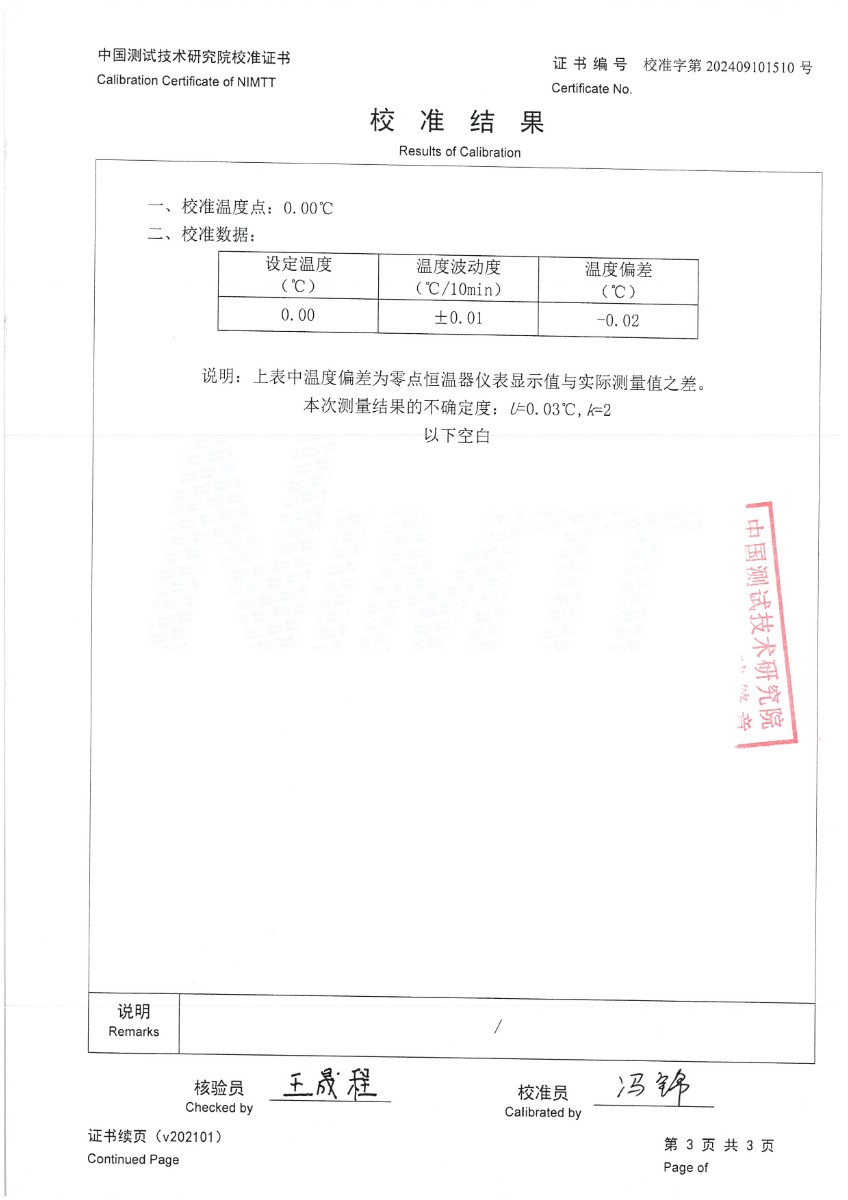 零點(diǎn)恒溫器校準(zhǔn)證書 2024-9-11 本文被閱讀 7388 次